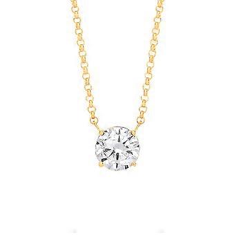 Jewelco London Ladies Gold-Plated Sterling Silver CZ 8mm Solitaire Lavalier Necklace 18 + 2 inch
