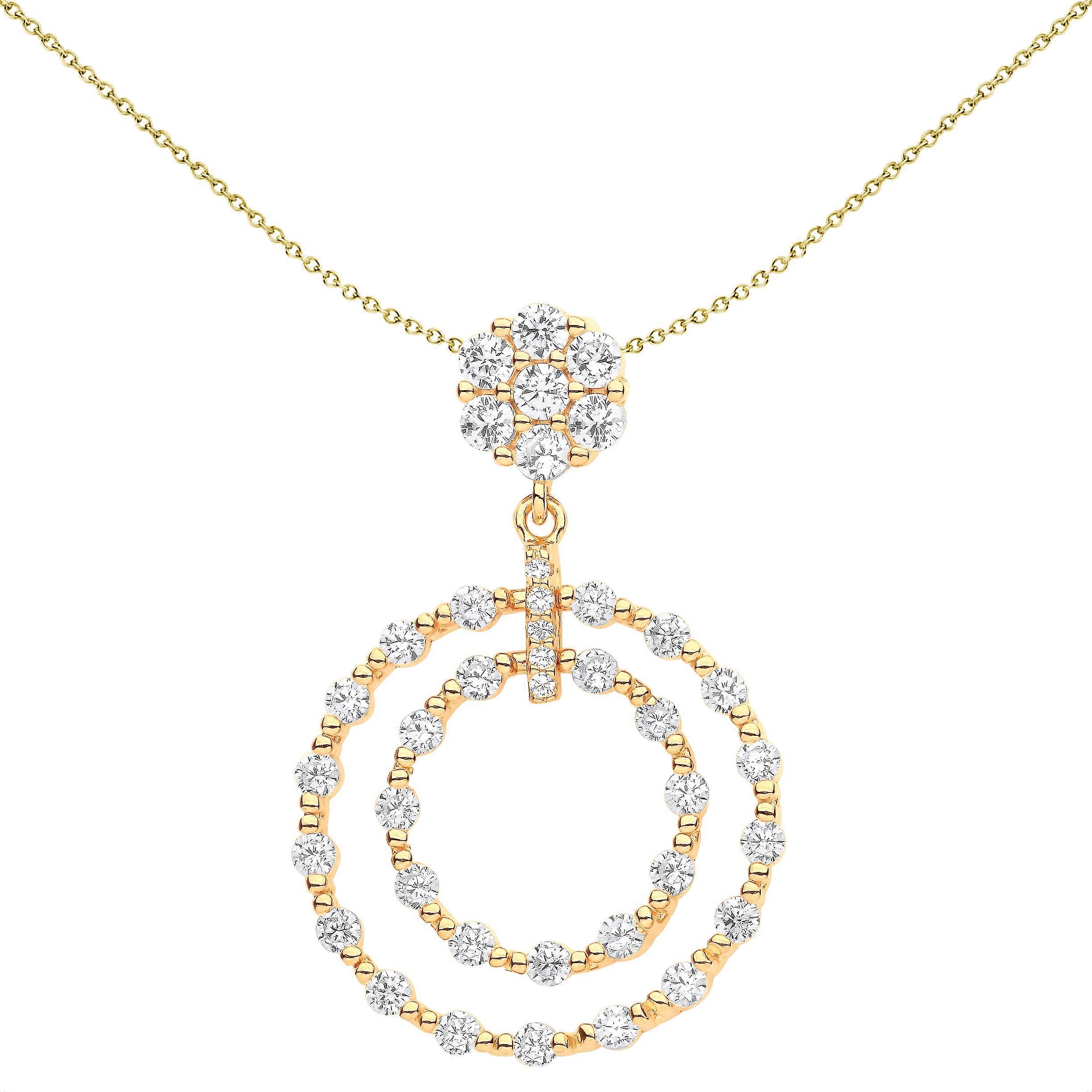 Jewelco London Ladies Gold-Plated Sterling Silver CZ Beaded Double Circle of Life Pendulum Pendant Necklace 18 inch