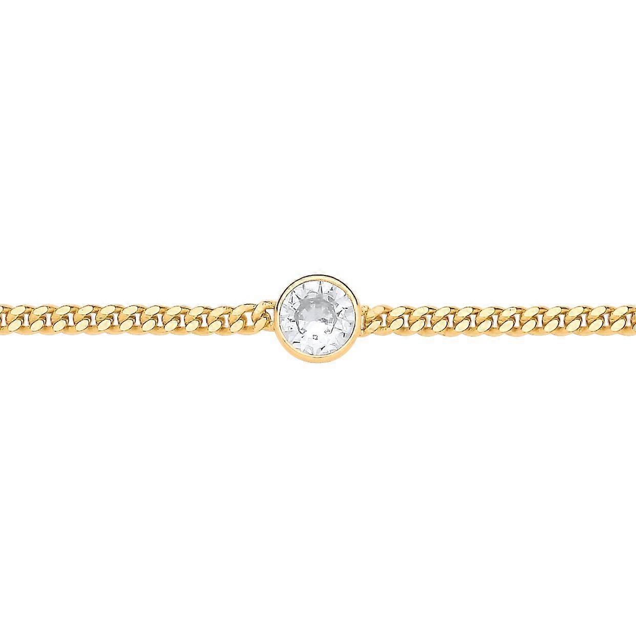 Jewelco London Ladies Gold-Plated Sterling Silver CZ Bezel Solitaire Curb Chain Bracelet 3mm 7.5 + 1 inch