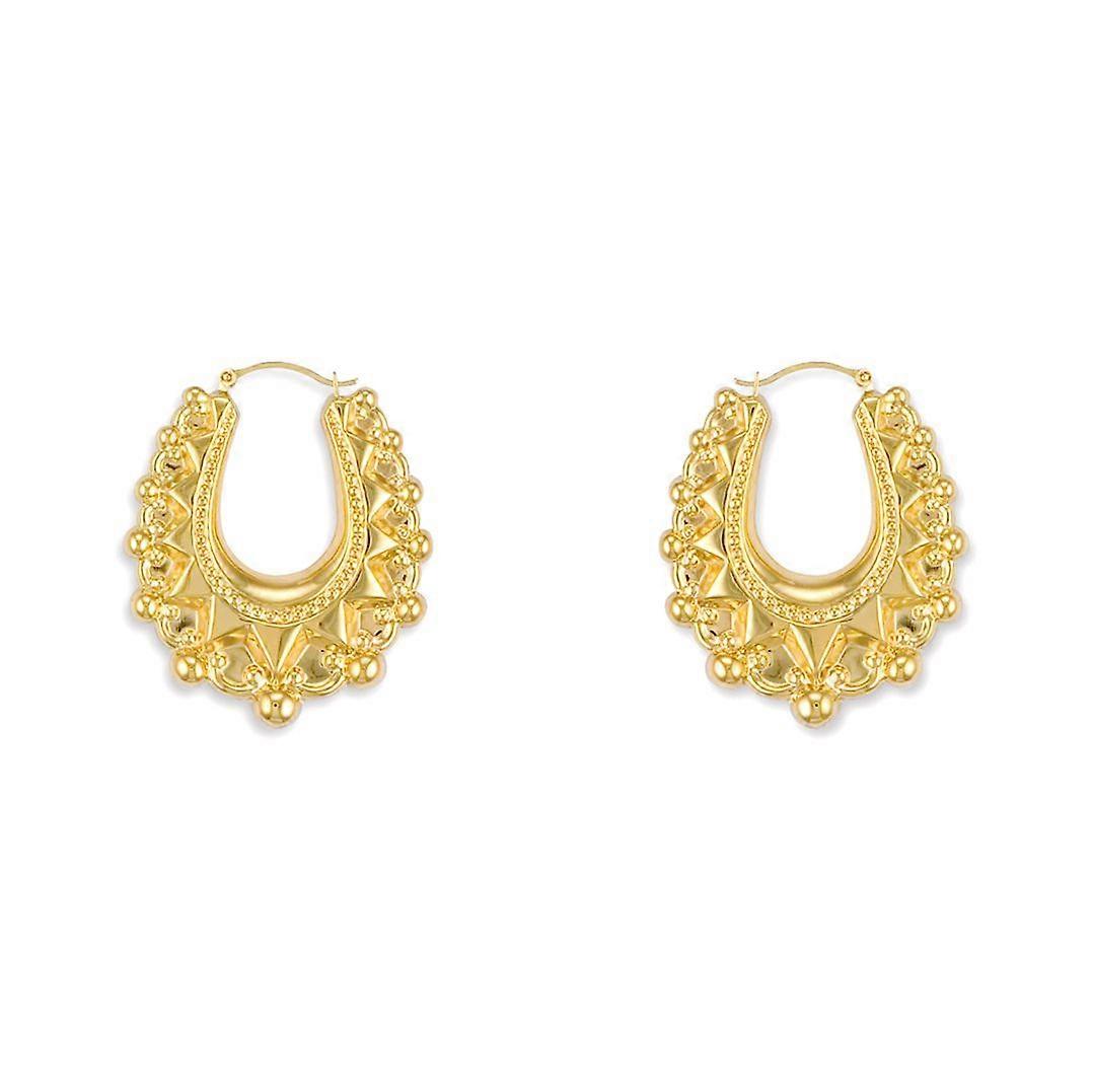 Jewelco London Ladies Gold-plated Sterling Silver Oval Pear Spikey Bead Creole Earrings 24mm