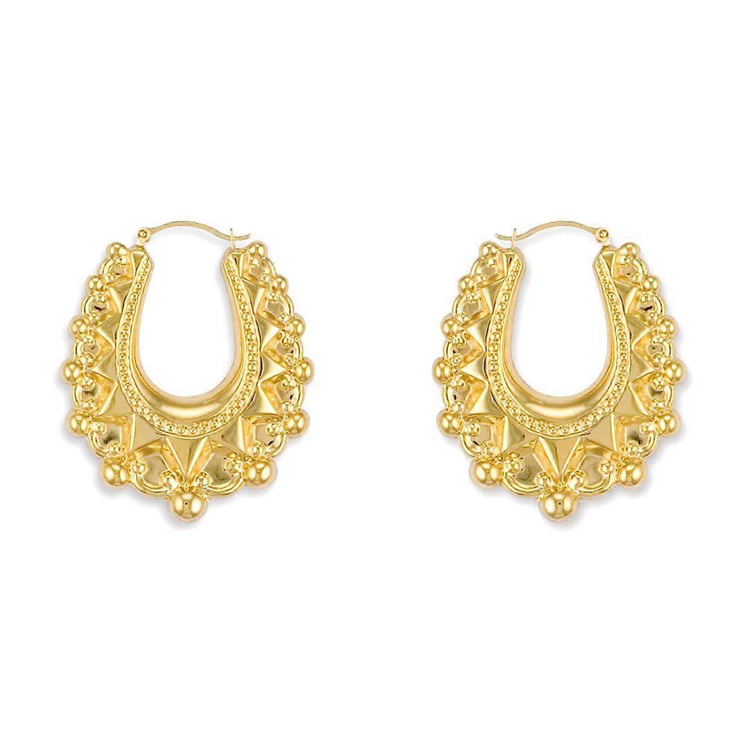 Jewelco London Ladies Gold-plated Sterling Silver Oval Pear Spikey Bead Creole Earrings 31mm