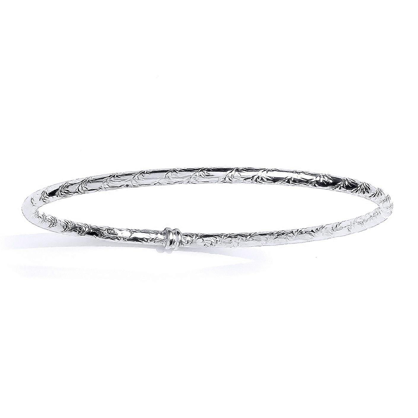 Jewelco London Ladies Platinum Plated Sterling Silver Diamond-cut Floral Tube Slave Bangle Bracelet 3mm