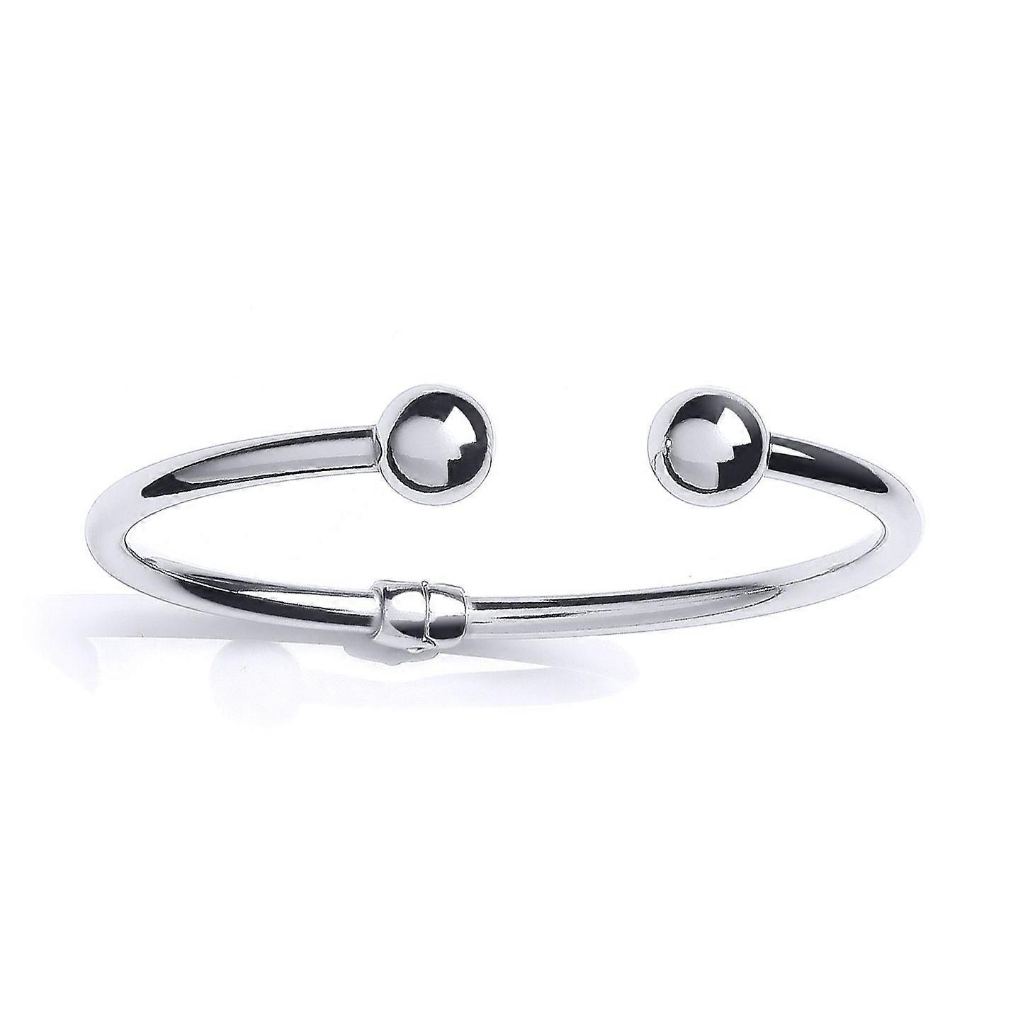 Jewelco London Ladies Platinum Plated Sterling Silver Plain Hinged 10mm Bead Torque Bangle Bracelet 4mm