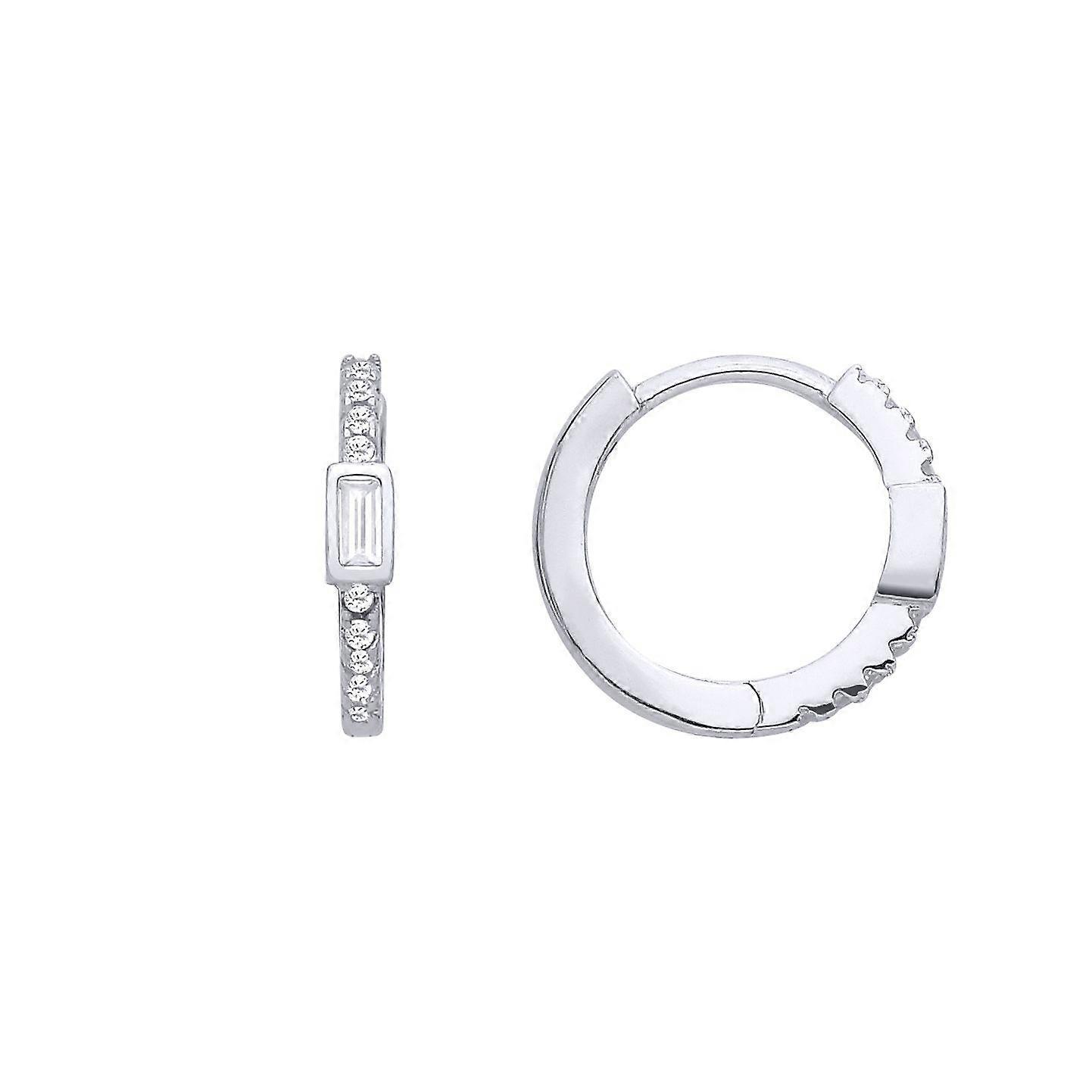 Jewelco London Ladies Rhodium Plated Sterling Silver Baguette CZ Engagement Ring Huggie Hoop Earrings