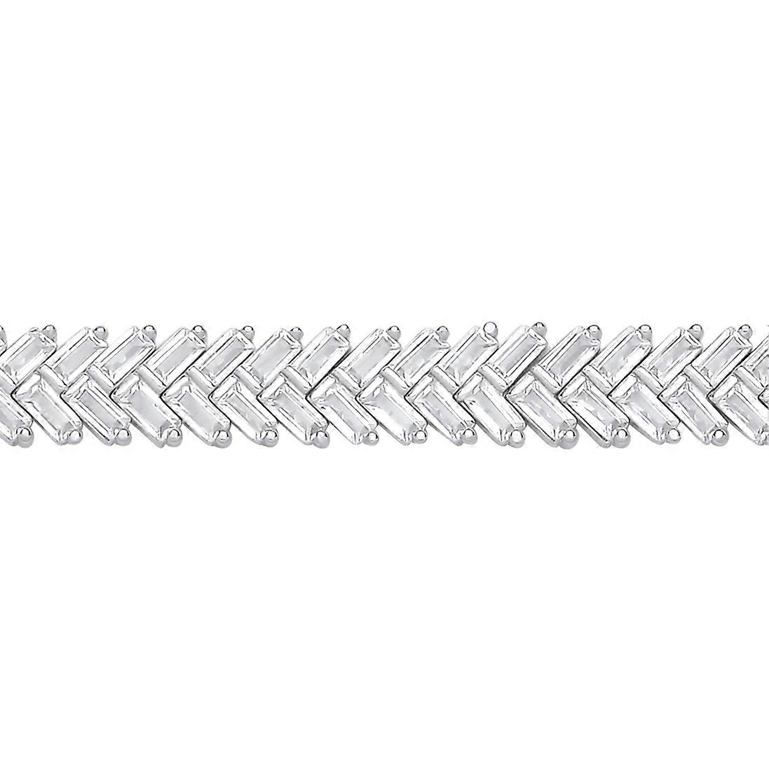 Jewelco London Ladies Rhodium Plated Sterling Silver Baguette CZ Herringbone Cluster Tennis Bracelet 8mm 7 inch