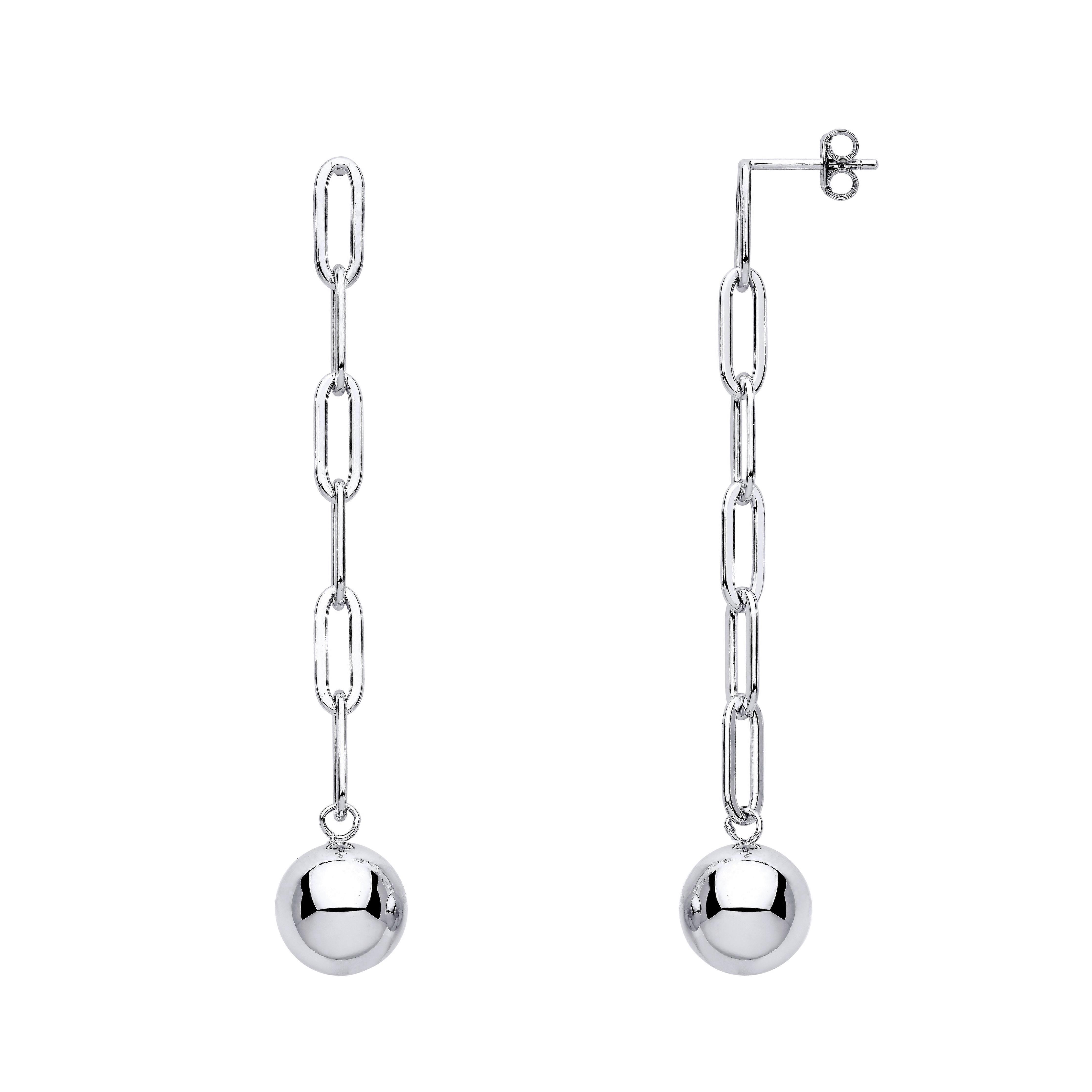 Jewelco London Ladies Rhodium Plated Sterling Silver Ball & Chain Paperclip Drop Earrings