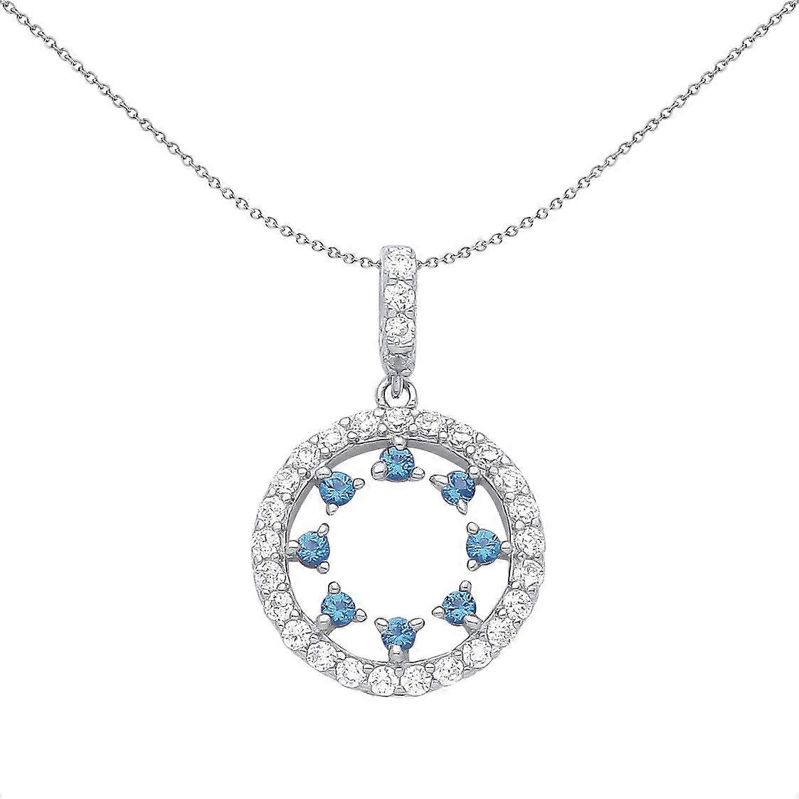 Jewelco London Ladies Rhodium Plated Sterling Silver Blue CZ Dance Circle of Celebration Pendant Necklace 18 inch
