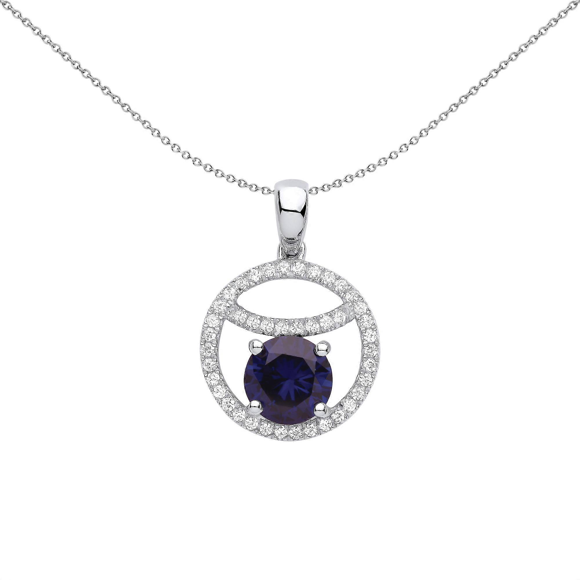 Jewelco London Ladies Rhodium Plated Sterling Silver Blue CZ Sleepy Eyeball Cirle of Life Pendant Necklace 18 inch