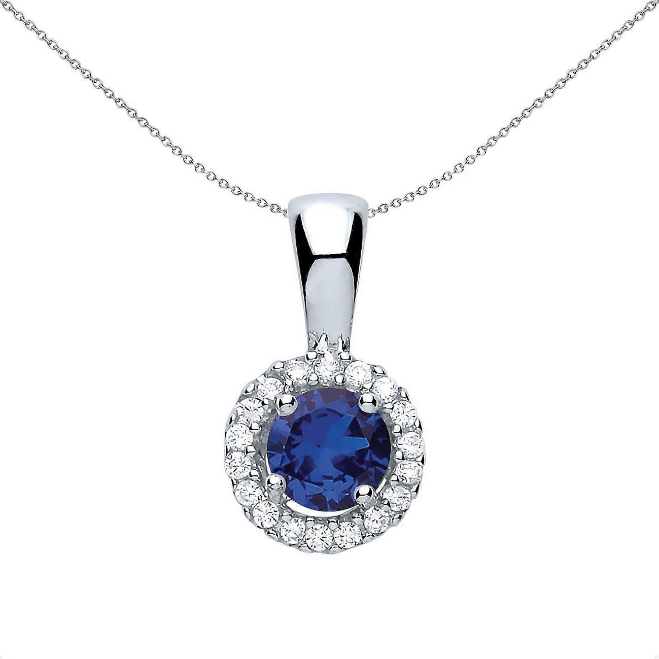 Jewelco London presents this piece from its latest collection of jewellery, a ladies pendant necklace made of rhodium plated sterling silver in a solitaire halo design, set with blue round cubic zirconia & white round cubic zirconia gemstones. Approx dimensions: 18 inch | Includes a Rhodium-Plated Sterling Silver chain, which can be adjusted to 16, 18 or 20 inches. Height: 17mm Width: 9.7mm Weight: 1.5g GEMSTONE: Cubic Zirconia, Round, Blue, Simulated GEMSTONE 2: Cubic Zirconia, Round, White, Simulated SKU: GVP292SAP