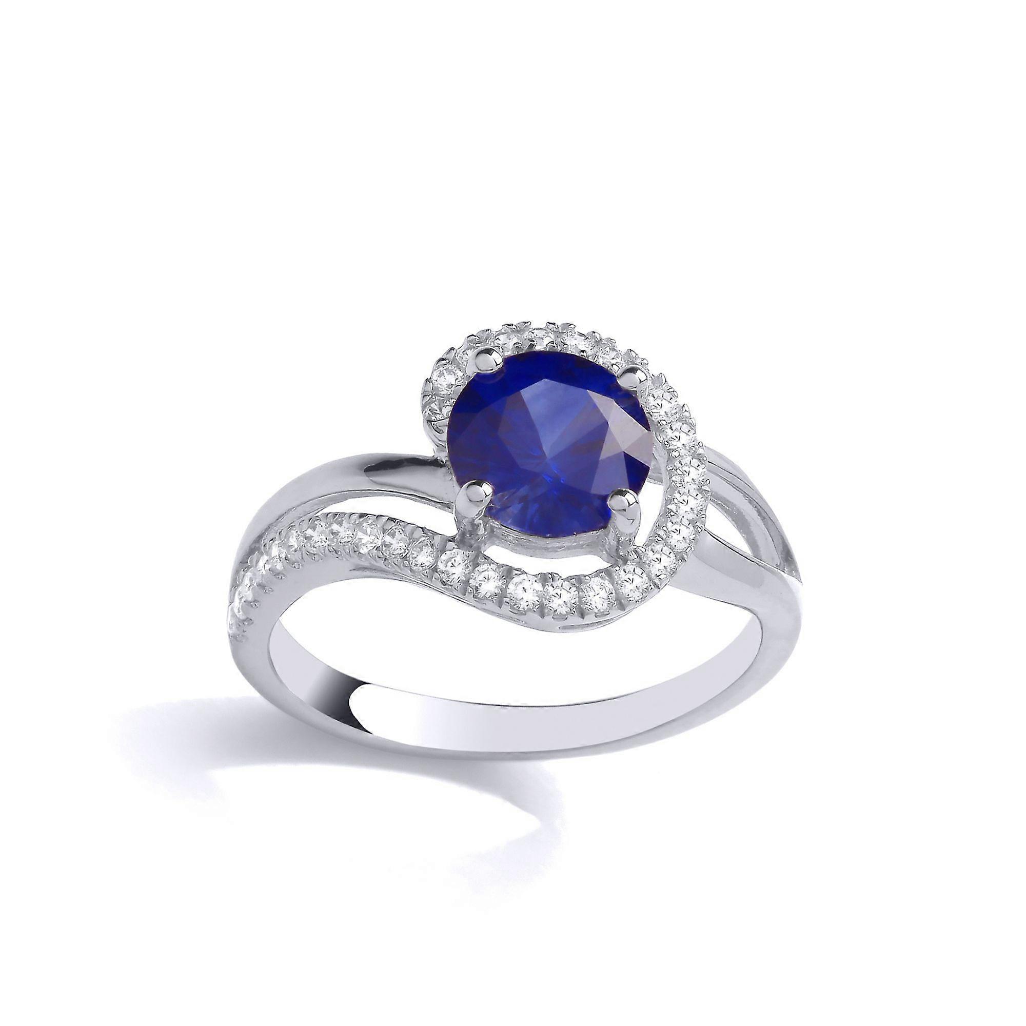 Jewelco London Ladies Rhodium Plated Sterling Silver Blue CZ Split Shank Question Mark Wave Cocktail Ring
