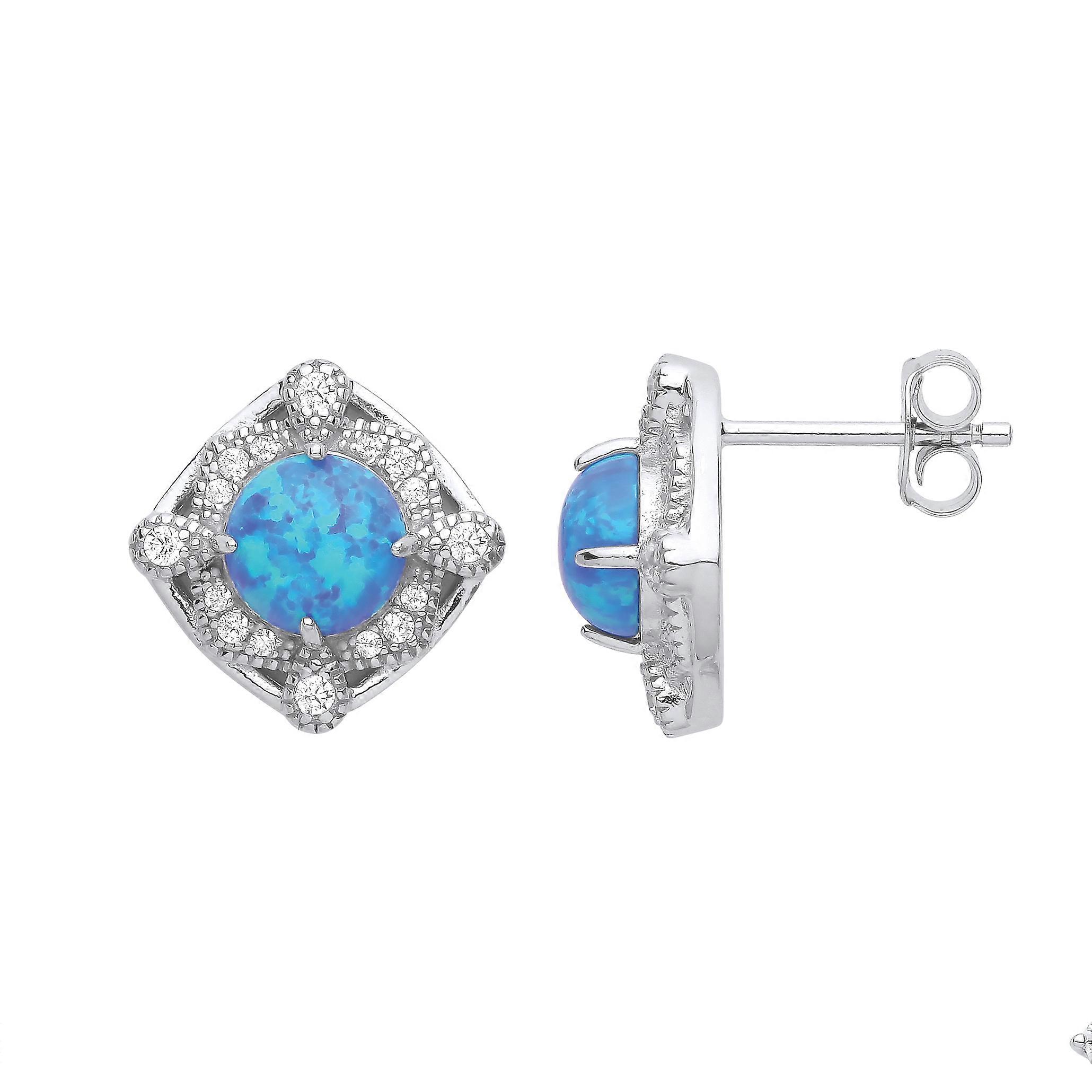 Jewelco London Ladies Rhodium Plated Sterling Silver Blue Opal CZ Luxury Mosaic Pool Pear Cushion Stud Earrings