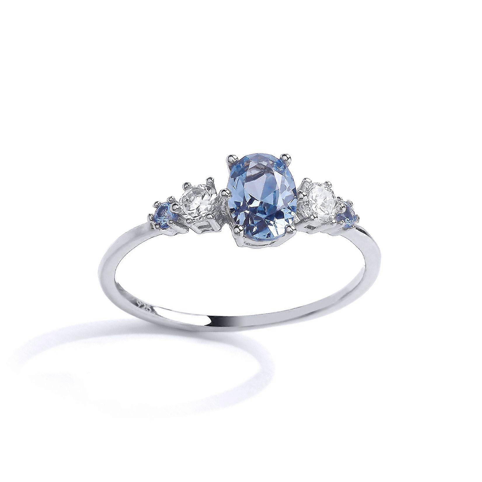 Jewelco London Ladies Rhodium Plated Sterling Silver Blue Oval CZ Icy Alternating Eternity Cocktail Ring