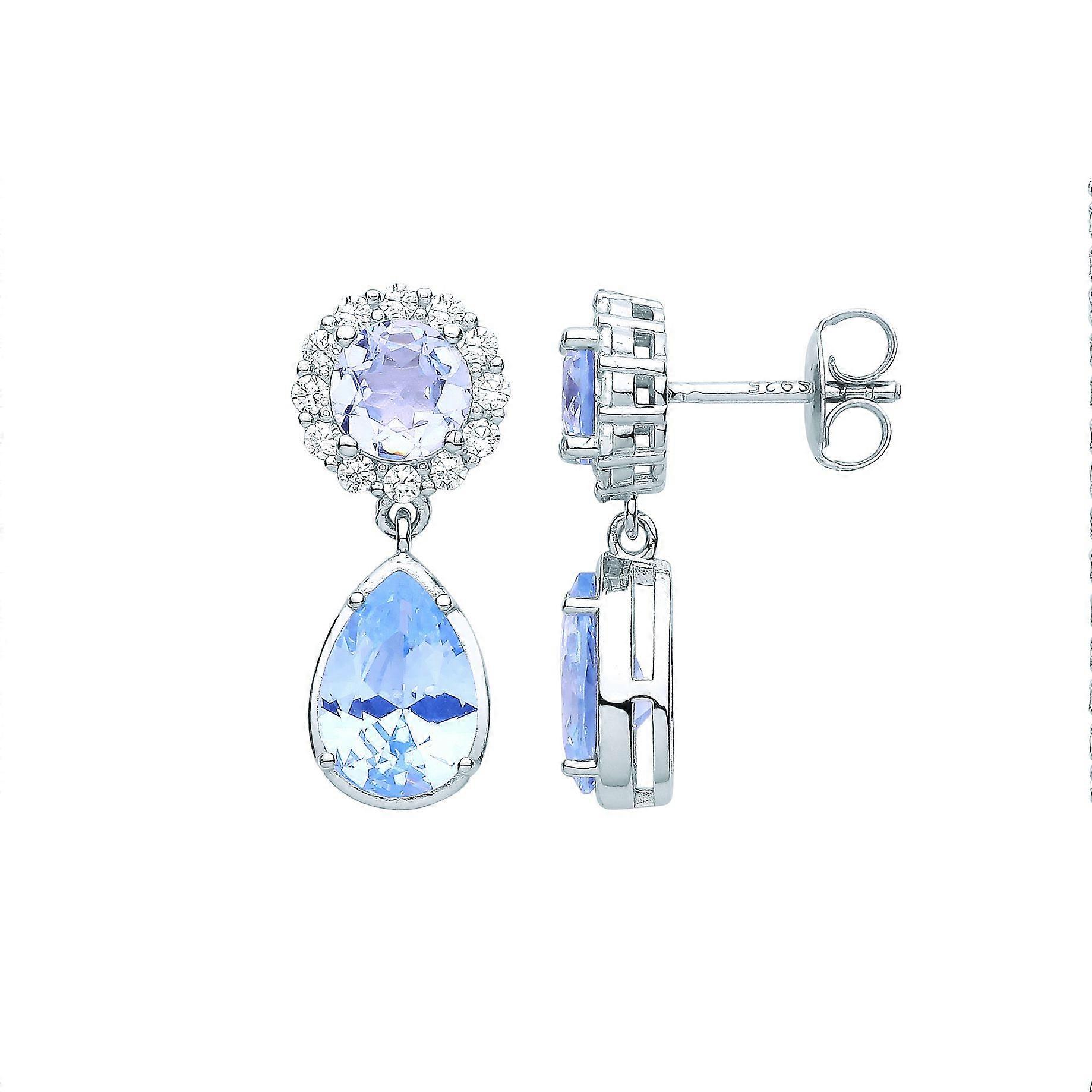 Jewelco London Ladies Rhodium Plated Sterling Silver Blue Pear CZ Raindrop Halo Cluster Solitaire Drop Earrings