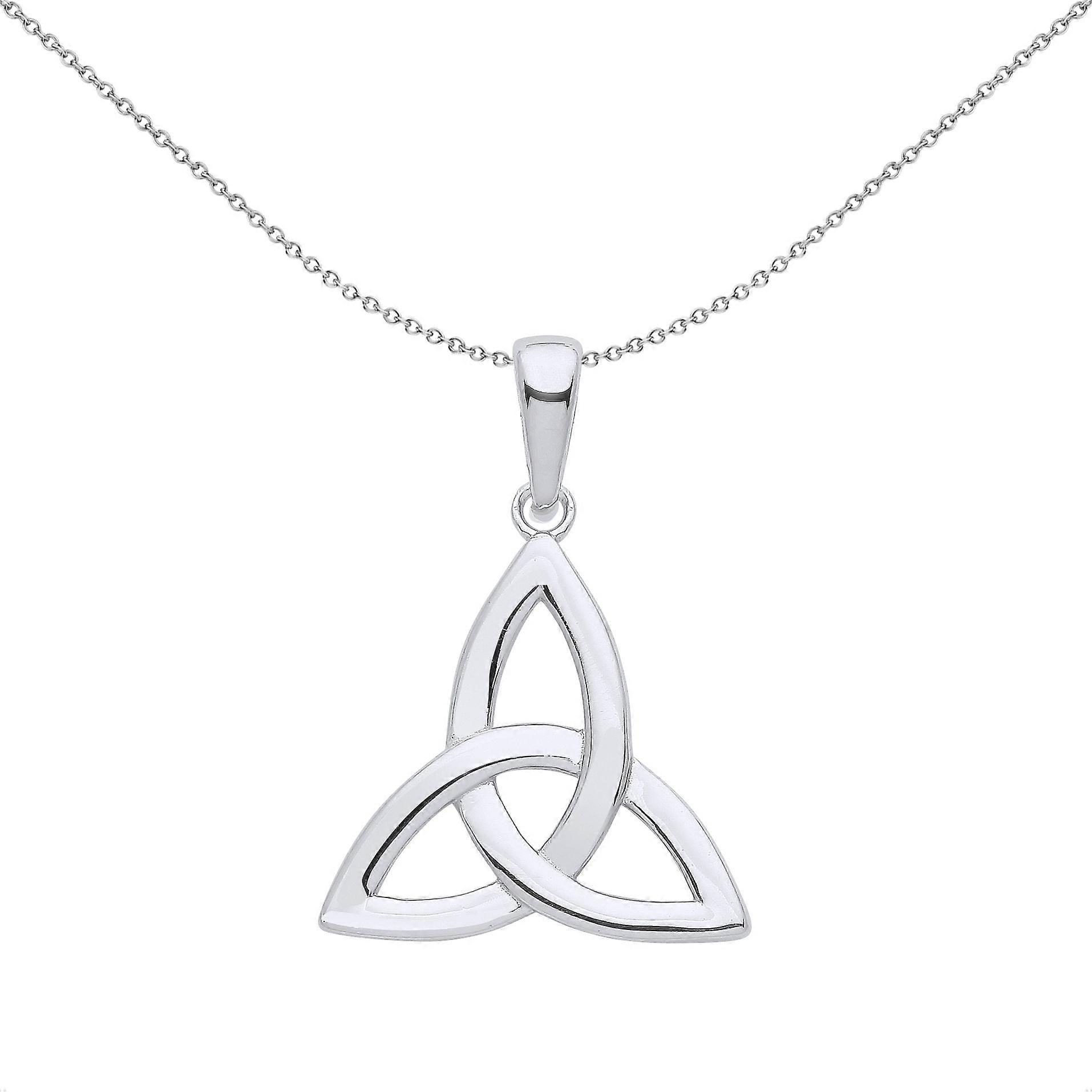 Jewelco London Ladies Rhodium Plated Sterling Silver Celtic Trinity Trefoil Triquetra Knot Pendant Necklace 18 inch