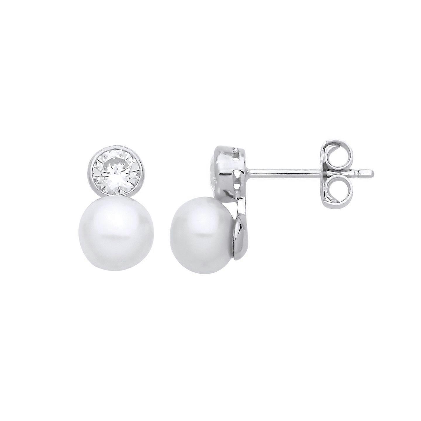 Jewelco London Ladies Rhodium Plated Sterling Silver Cream Pearl CZ Torch Helmet Snowman Solitaire Drop Earrings