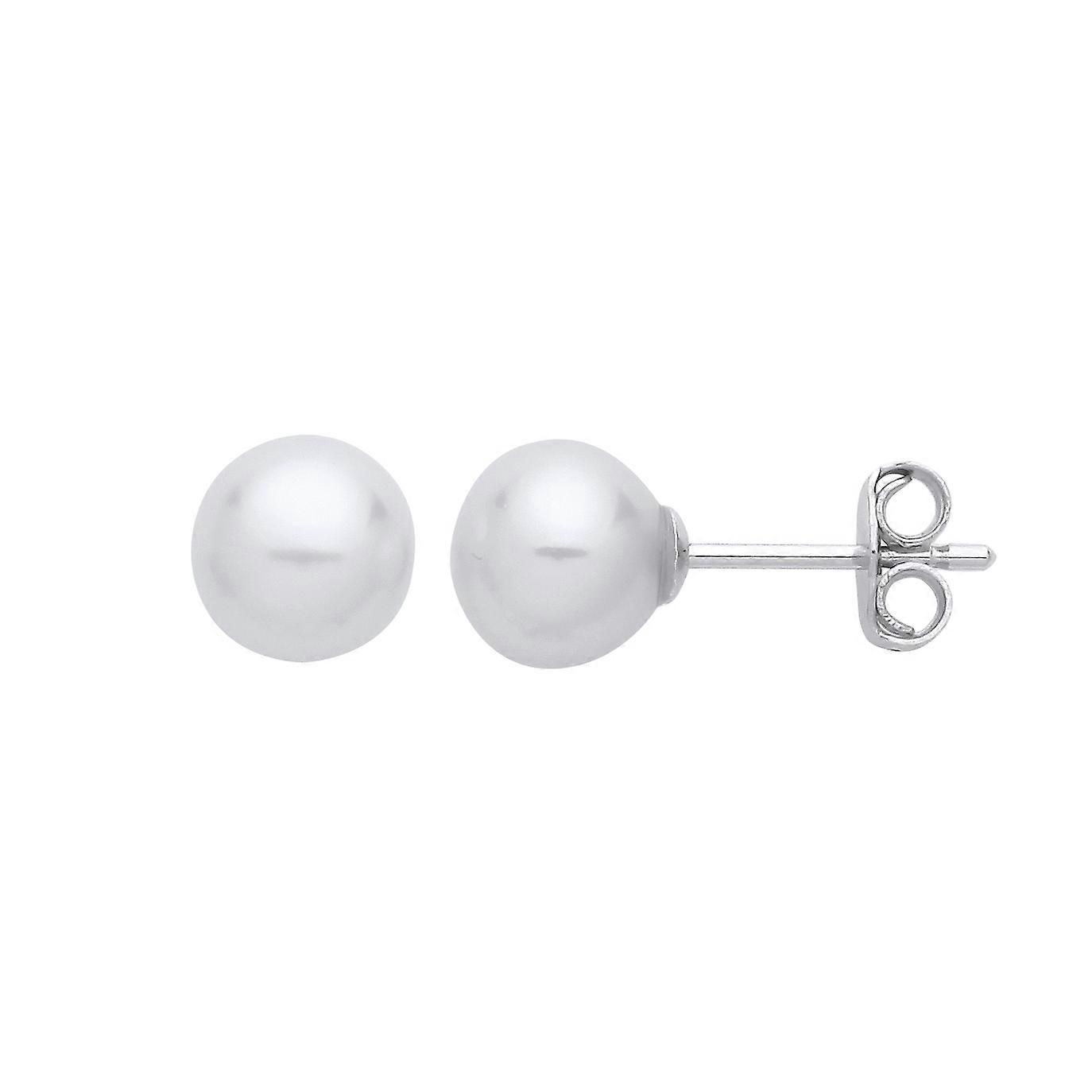 Jewelco London Ladies Rhodium Plated Sterling Silver Cream Pearl Levana Full Moon Stud Earrings