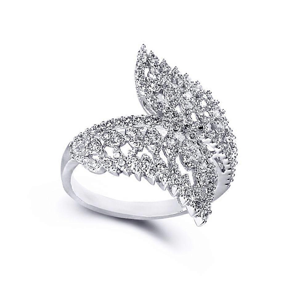 Jewelco London Ladies Rhodium Plated Sterling Silver Cubic Zirconia Crossover Angel Wing Feathers Dress Ring