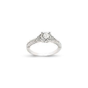 Jewelco London Ladies Rhodium Plated Sterling Silver Cubic Zirconia Shoulder-set Solitaire Engagement Ring