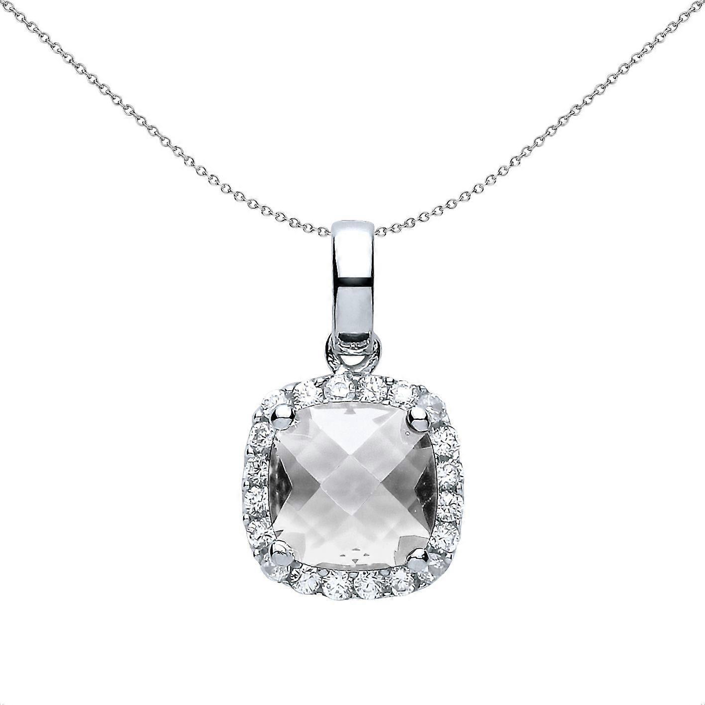 Jewelco London Ladies Rhodium Plated Sterling Silver Cushion CZ Solitaire Halo Pendant Necklace 18 inch