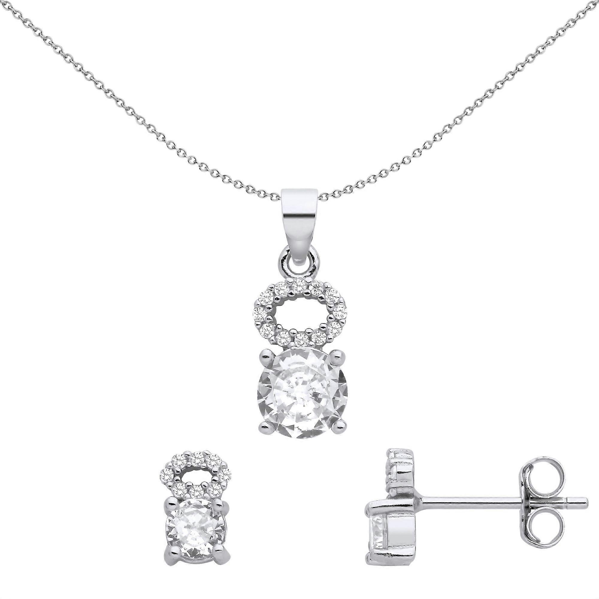 Jewelco London Ladies Rhodium Plated Sterling Silver CZ Angel Halo Solitaire Earrings Necklace Set