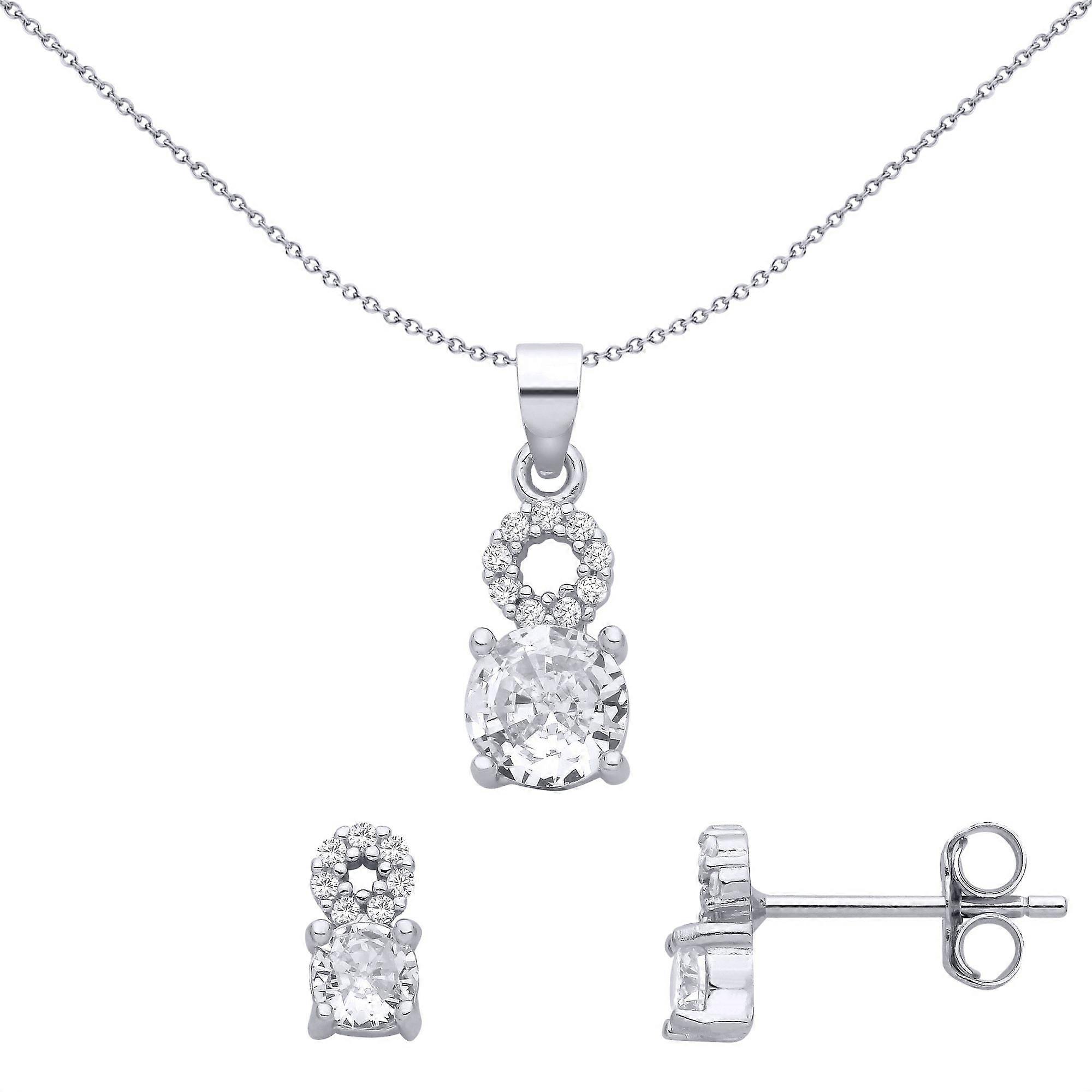 Jewelco London Ladies Rhodium Plated Sterling Silver CZ Angel Halo Solitaire Earrings Necklace Set