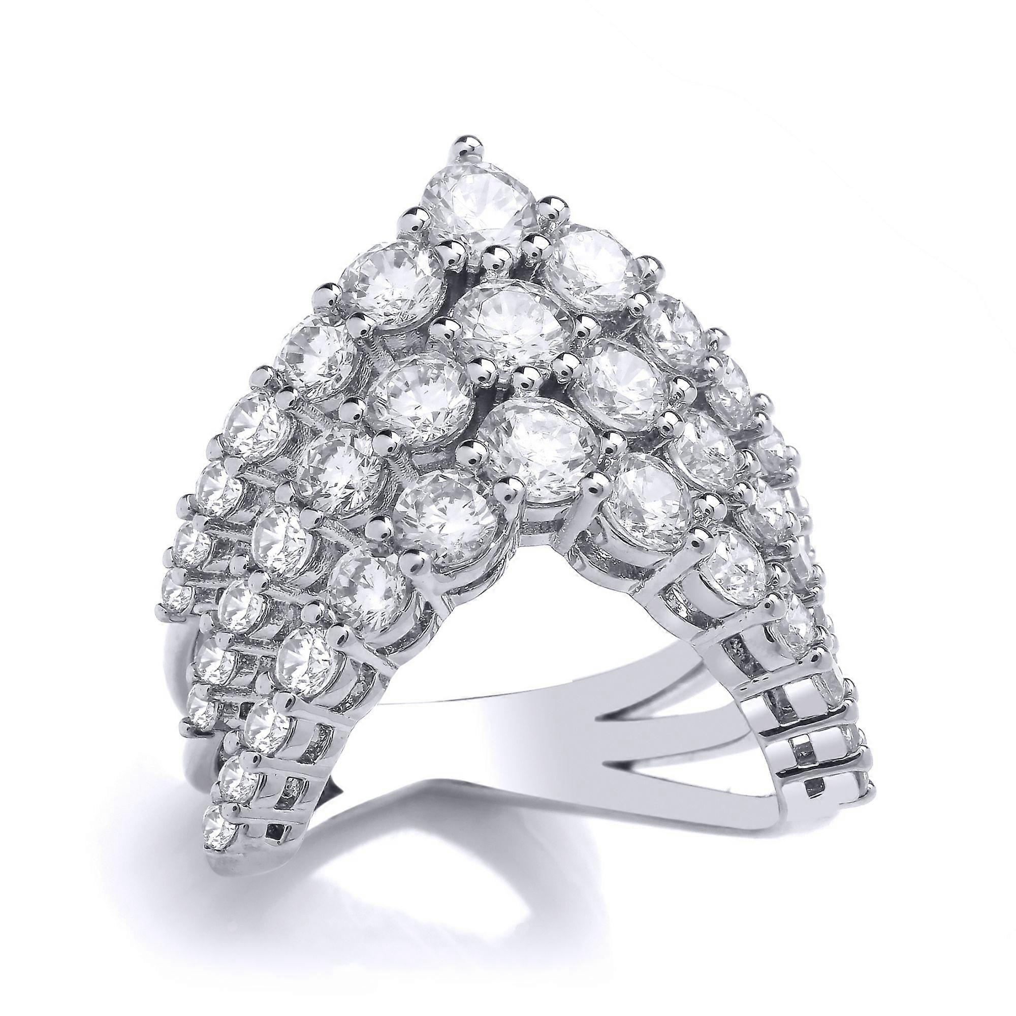 Jewelco London Ladies Rhodium Plated Sterling Silver CZ Arrowhead 3 Row Graduated Wishbone Eternity Ring