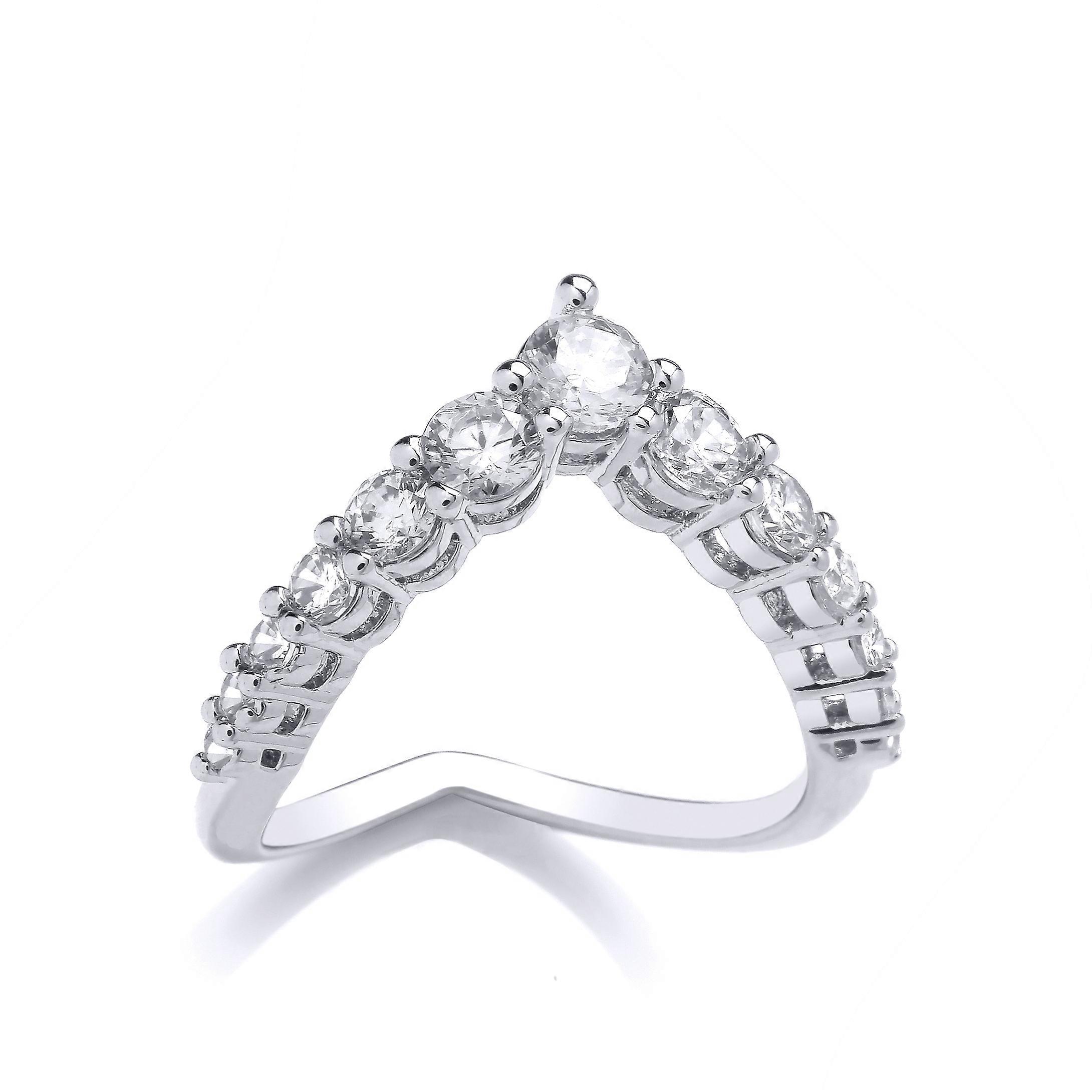Jewelco London Ladies Rhodium Plated Sterling Silver CZ Arrowhead Claw Set Graduated Wishbone Eternity Ring