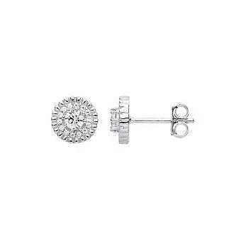 Jewelco London Ladies Rhodium Plated Sterling Silver CZ Bead Edge Halo Solitaire Cluster Stud Earrings