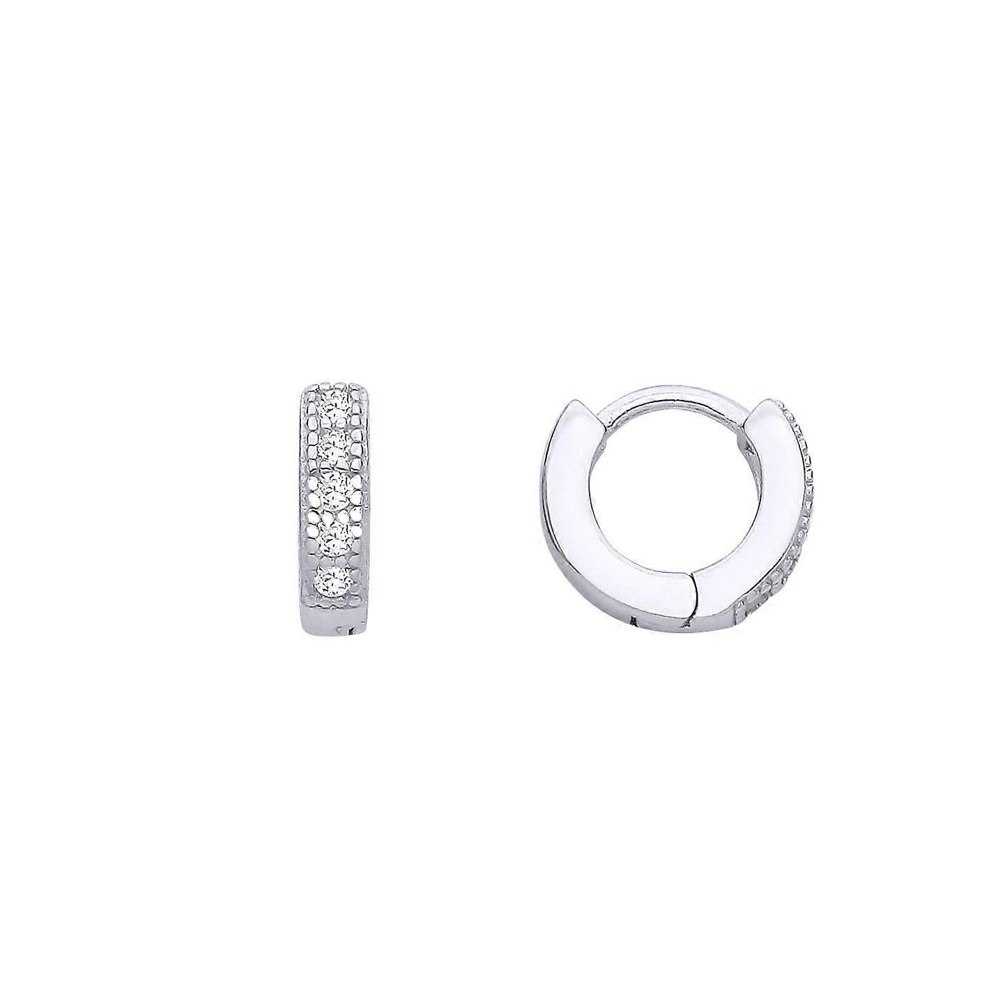 Jewelco London Ladies Rhodium Plated Sterling Silver CZ Bead Edge Pave Eternity Huggie Hoop Earrings