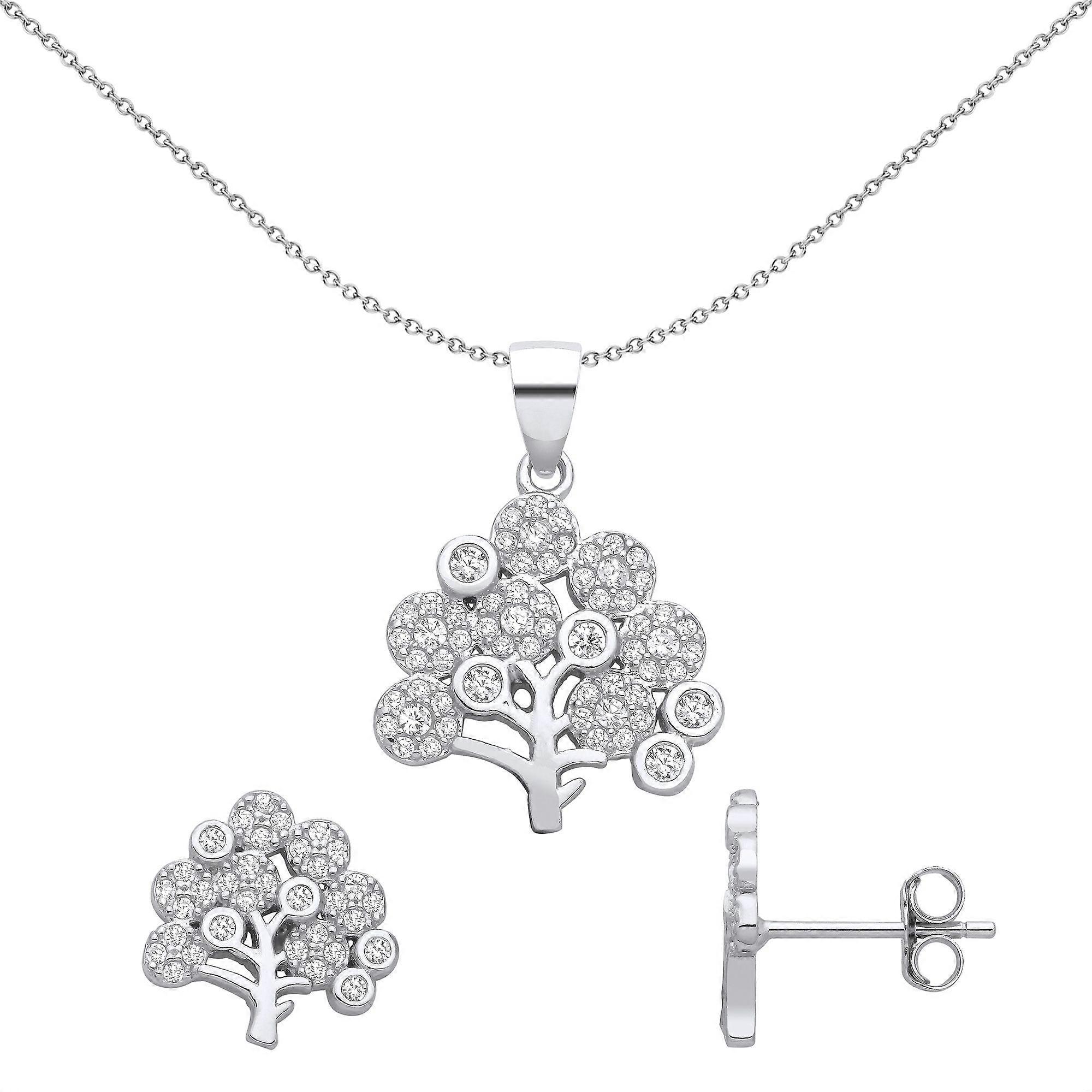 Jewelco London Ladies Rhodium Plated Sterling Silver CZ Bushy Tree Broccoli Cluster Earrings Necklace Set