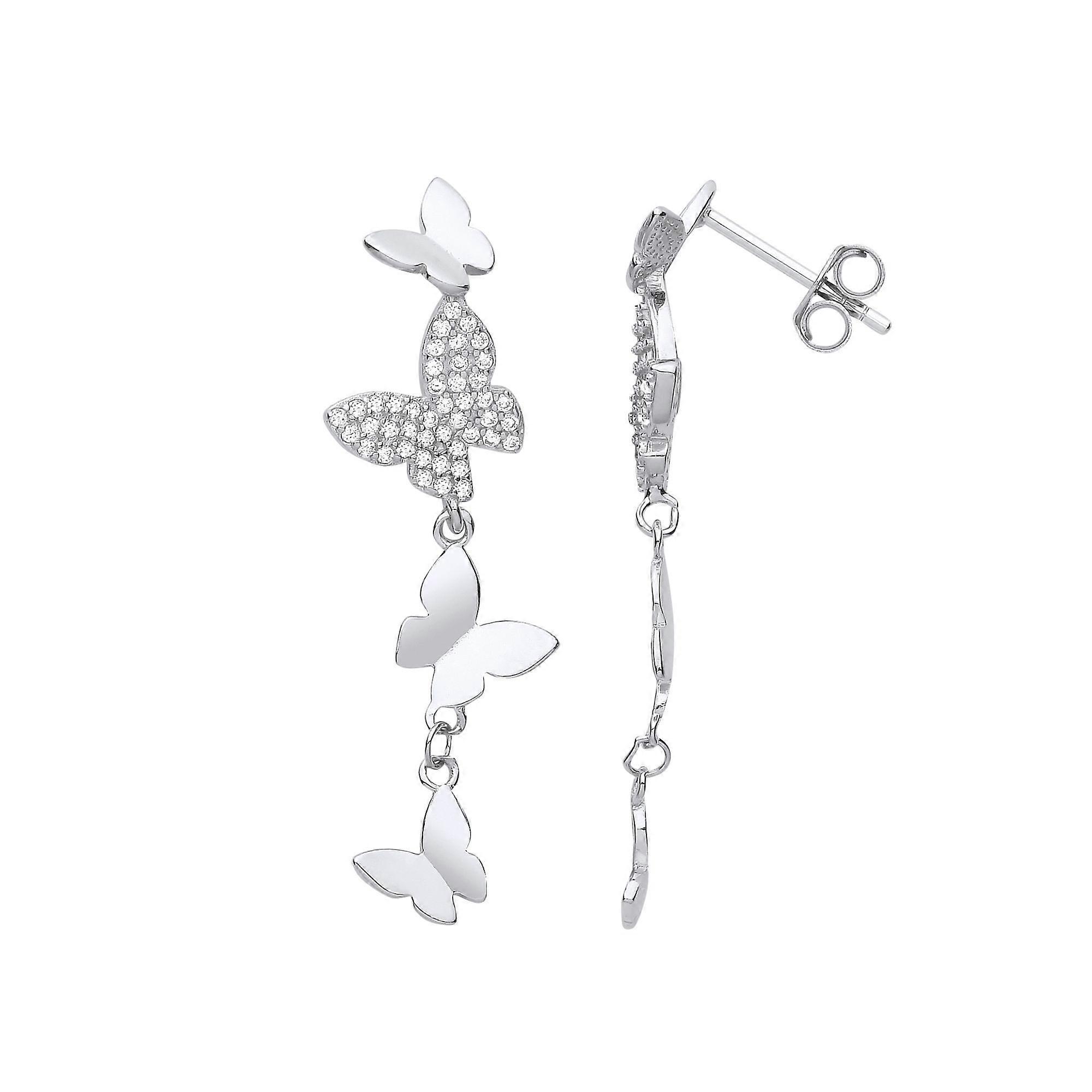 Jewelco London Ladies Rhodium Plated Sterling Silver CZ Butterfly Paper Chain Drop Earrings