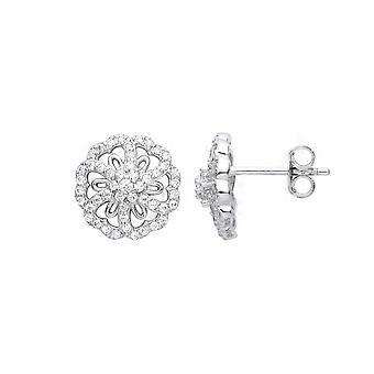 Jewelco London Ladies Rhodium Plated Sterling Silver CZ Daisy Snowflake Starfish Cluster Stud Earrings