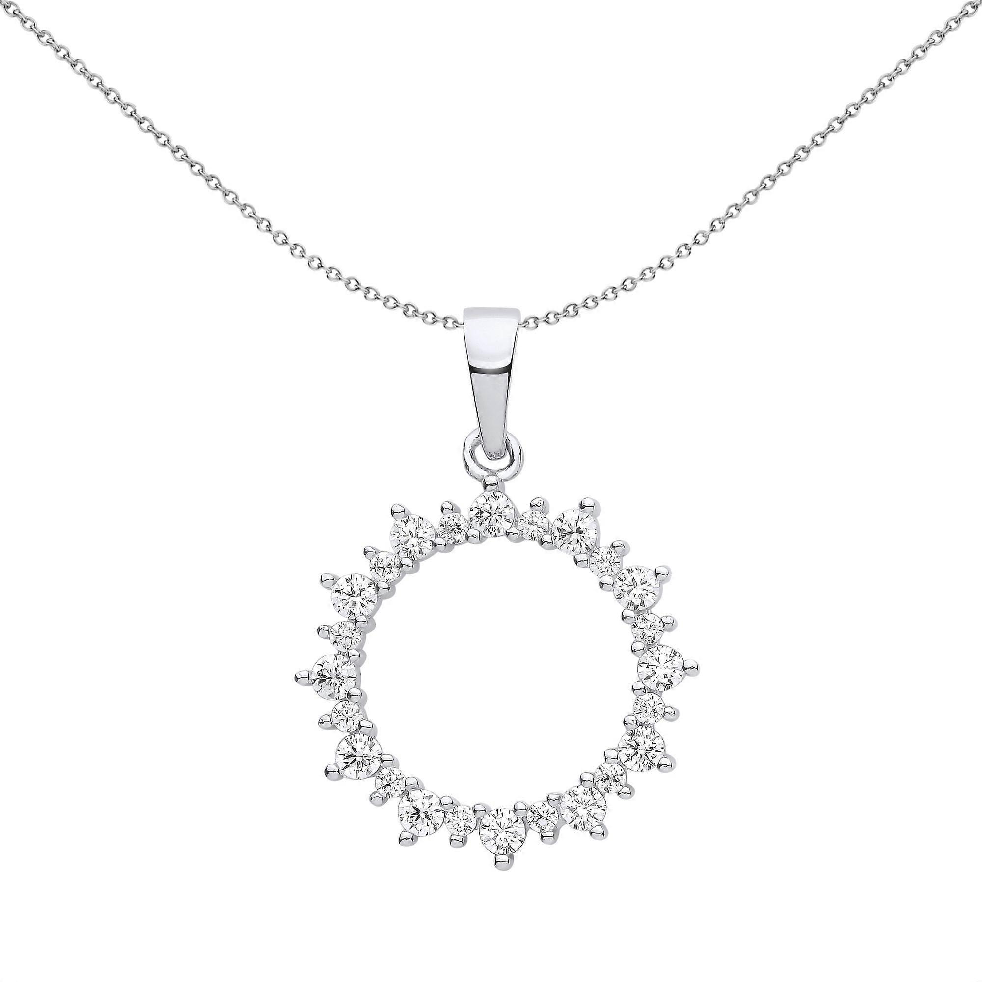 Jewelco London Ladies Rhodium Plated Sterling Silver CZ Fuzzy Electric Circle of Life Pendant Necklace 18 inch