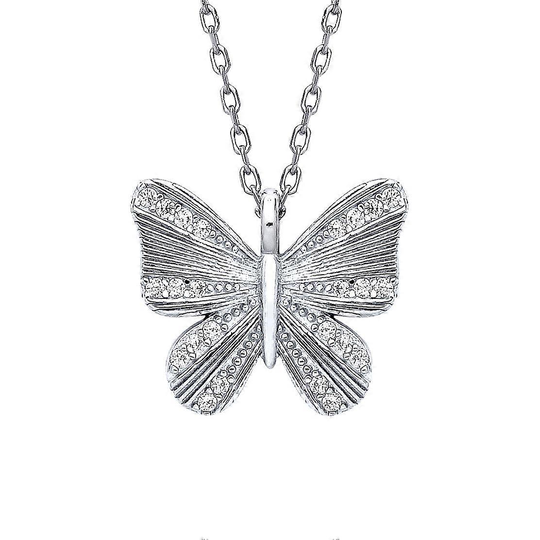 Jewelco London Ladies Rhodium Plated Sterling Silver CZ Graceful Butterfly Pendant Necklace 16 + 2 inch