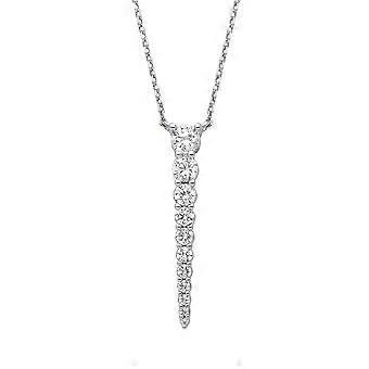 Jewelco London Ladies Rhodium Plated Sterling Silver CZ Graduated 10 Stone Icicle Lavalier Necklace 16 + 2 inch