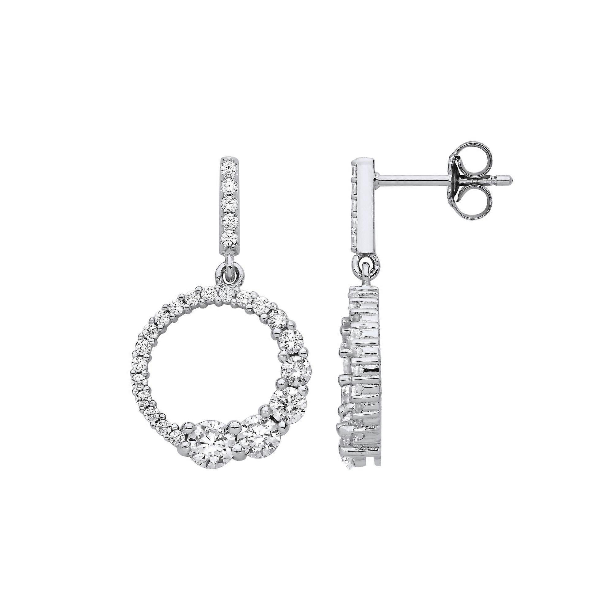 Jewelco London Ladies Rhodium Plated Sterling Silver CZ Graduated Circle of Life Ouroboros Drop Earrings