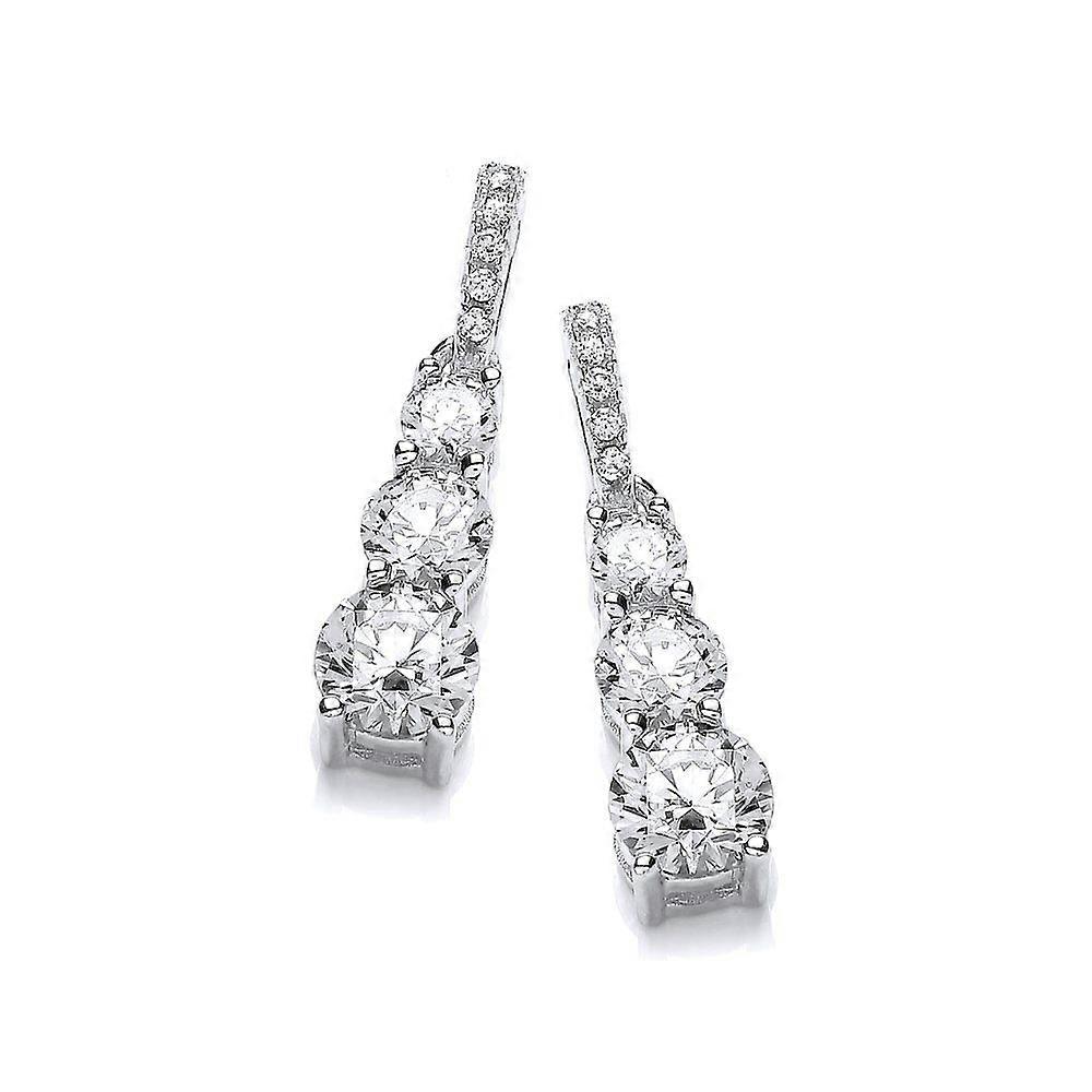 Jewelco London Ladies Rhodium Plated Sterling Silver CZ Graduated Trilogy Eternity Drop Earrings