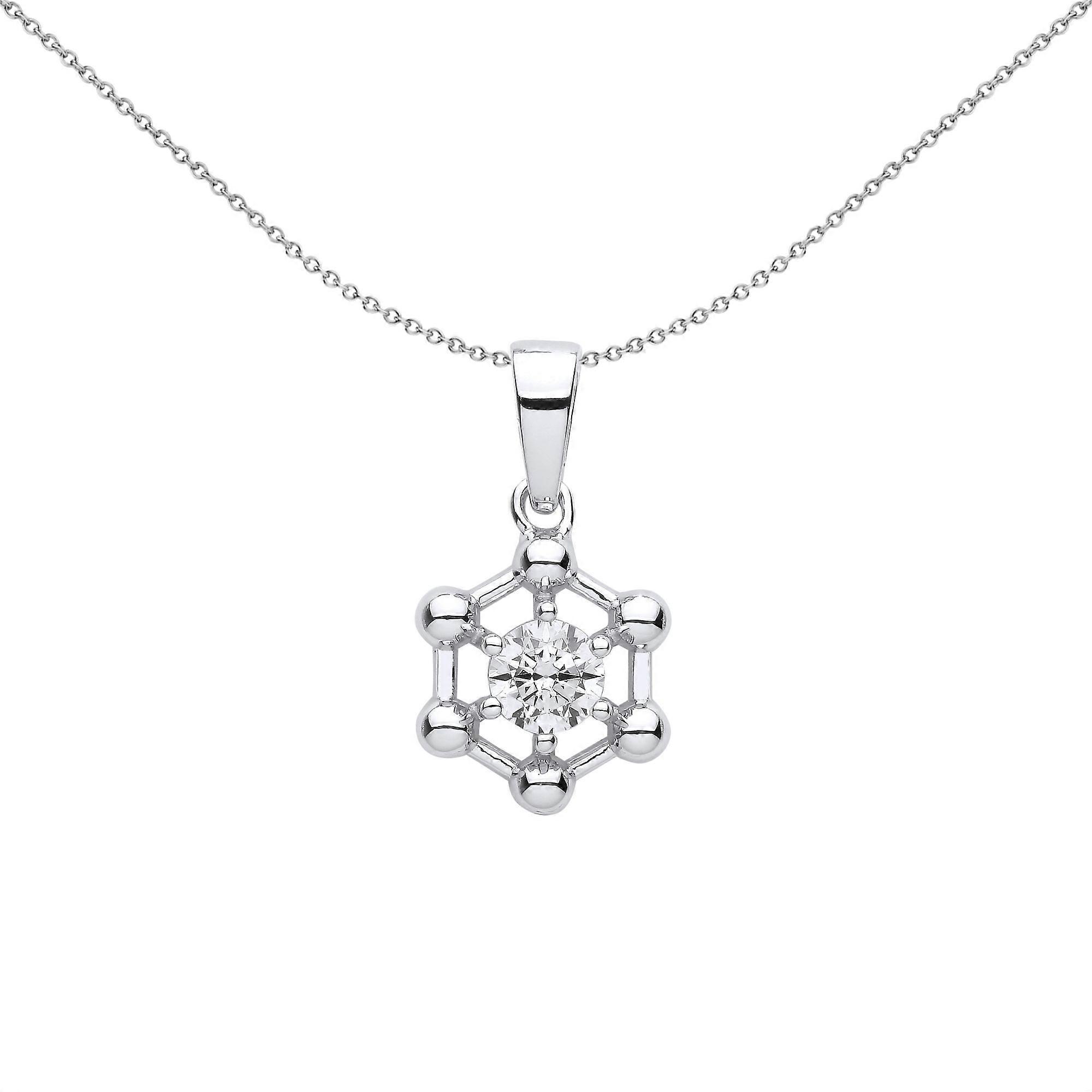 Jewelco London Ladies Rhodium Plated Sterling Silver CZ Hexagon Honeycomb Molecular Structure Pendant Necklace 18 inch