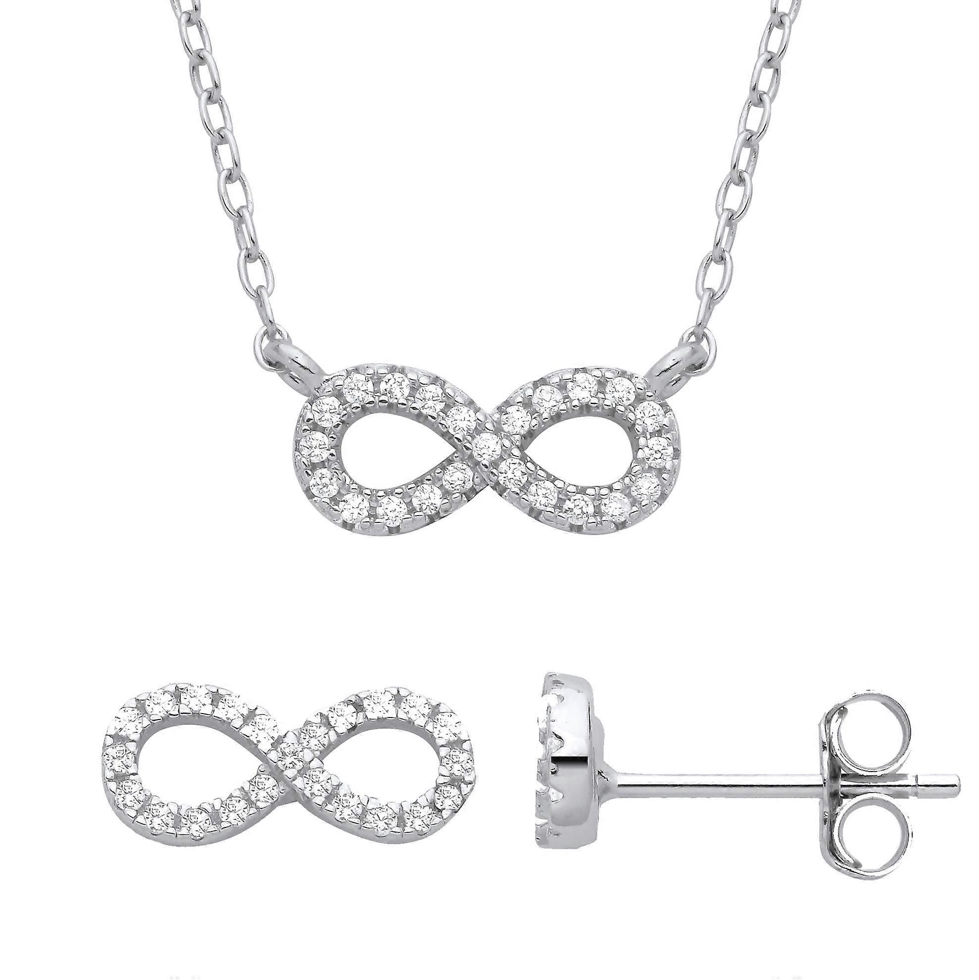 Jewelco London Ladies Rhodium Plated Sterling Silver CZ Infinity Figure 8 Earrings Necklace Set