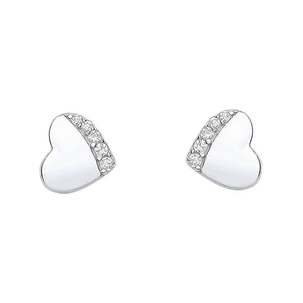 Jewelco London Ladies Rhodium Plated Sterling Silver CZ Love Heart Graduated Accent Stud Earrings