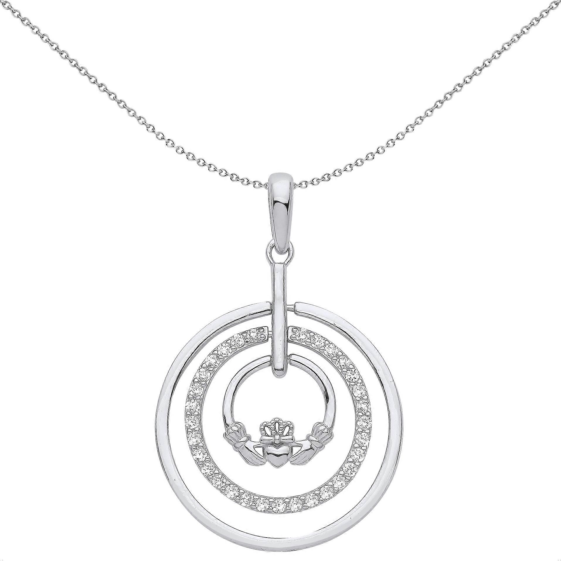 Jewelco London Ladies Rhodium Plated Sterling Silver CZ Magic Circle of Life Eternity Claddagh Pendant Necklace 18 inch