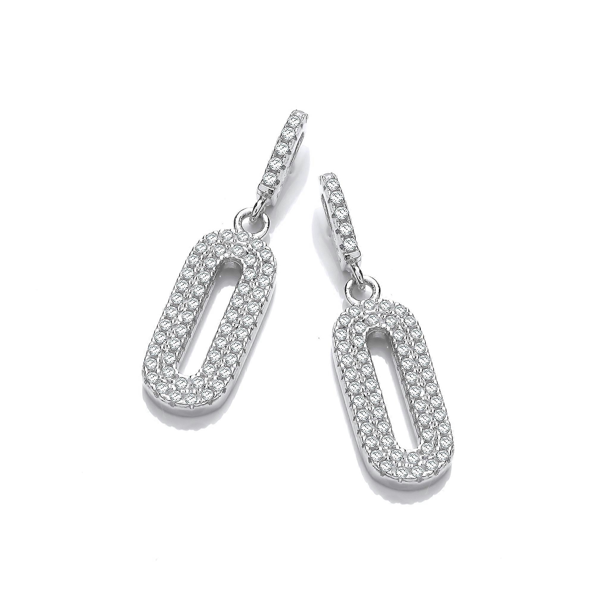 Jewelco London Ladies Rhodium Plated Sterling Silver CZ Oval Pill Paperclip Drop Earrings