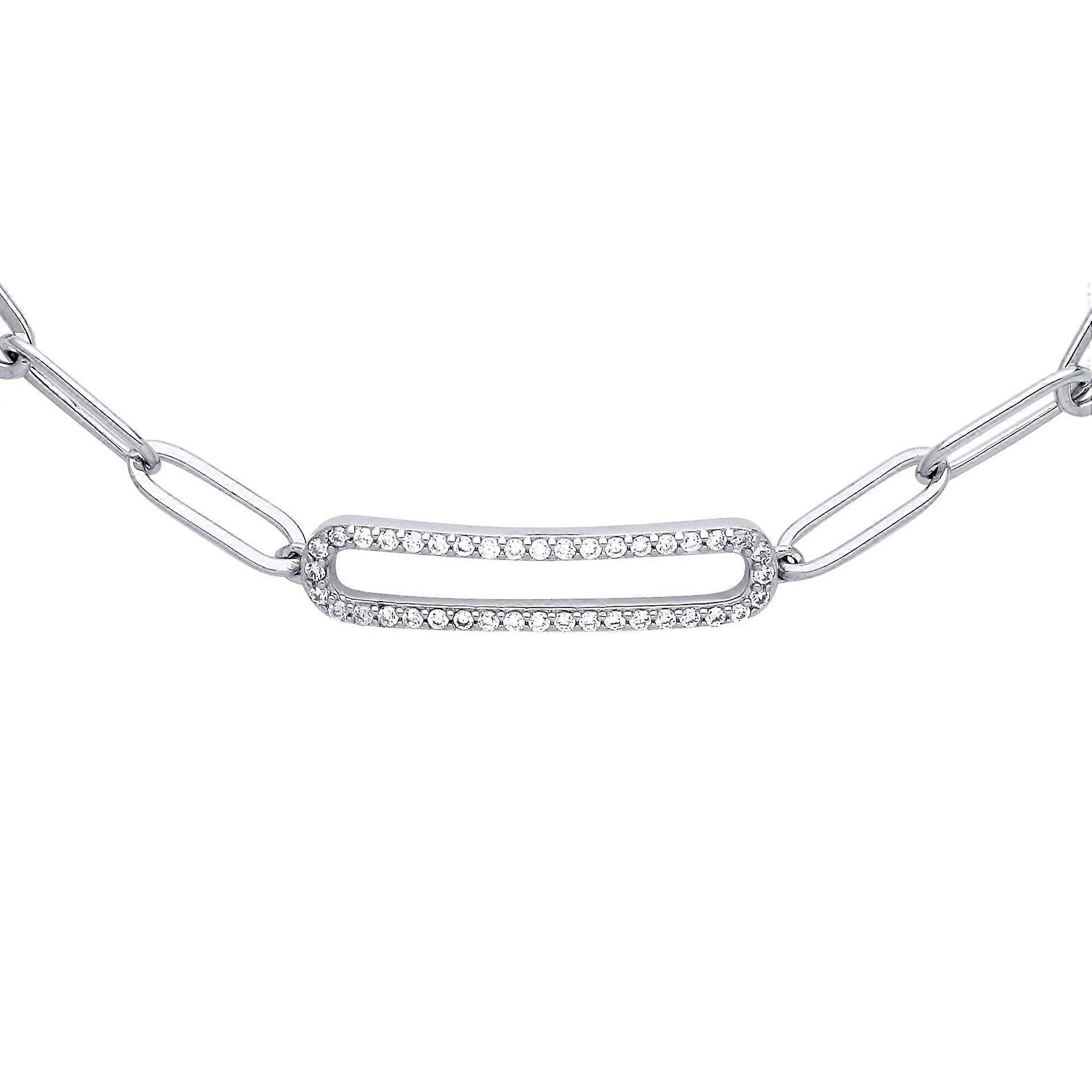 Jewelco London Ladies Rhodium Plated Sterling Silver CZ Pave Paper Clip Pill Shape Chain Bracelet 5mm 6.5 + 1 inch