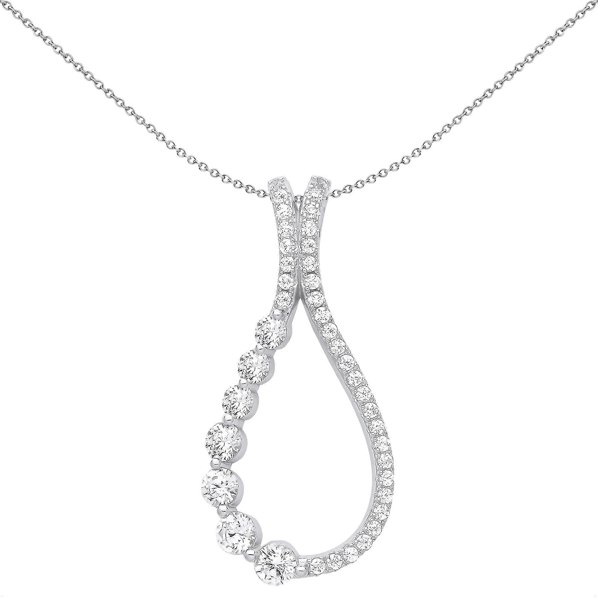 Jewelco London Ladies Rhodium Plated Sterling Silver CZ Raindrop Split Loop Eternity Pendant Necklace 18 inch