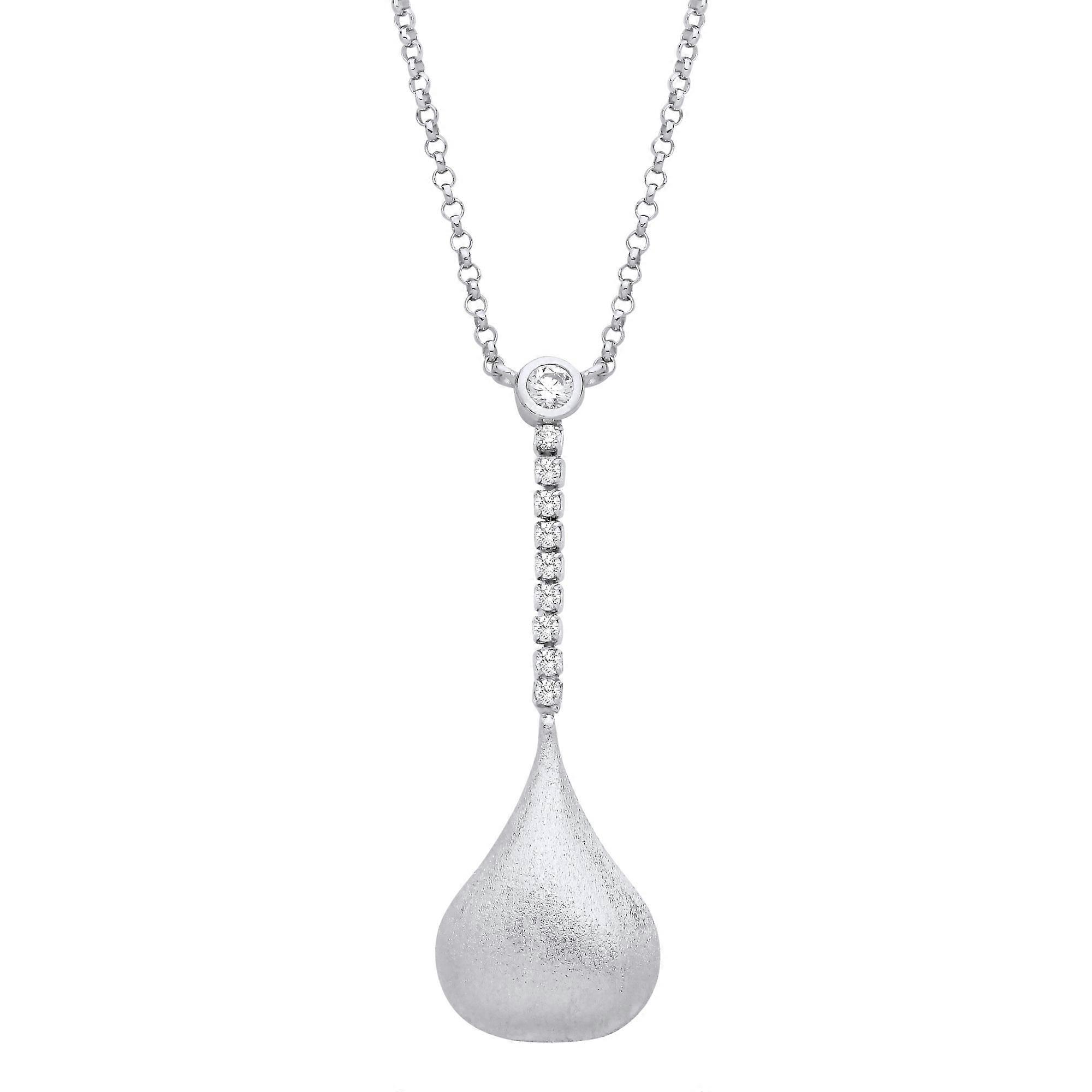 Jewelco London Ladies Rhodium Plated Sterling Silver CZ Satin Onion Dome Pendant Lamp Lavalier Necklace 16 inch