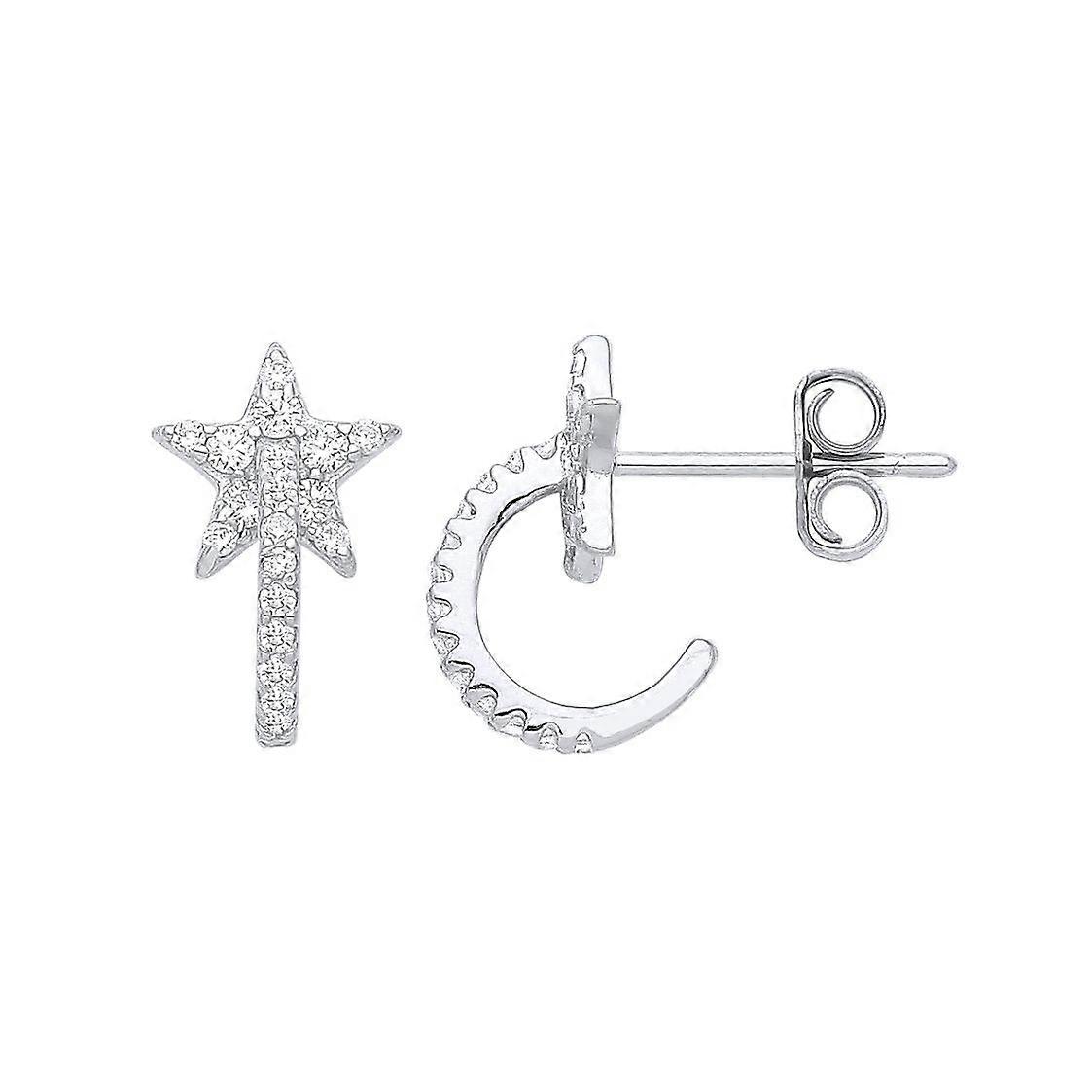 Jewelco London Ladies Rhodium Plated Sterling Silver CZ Semi Eternity Hoop Super Star Drop Earrings