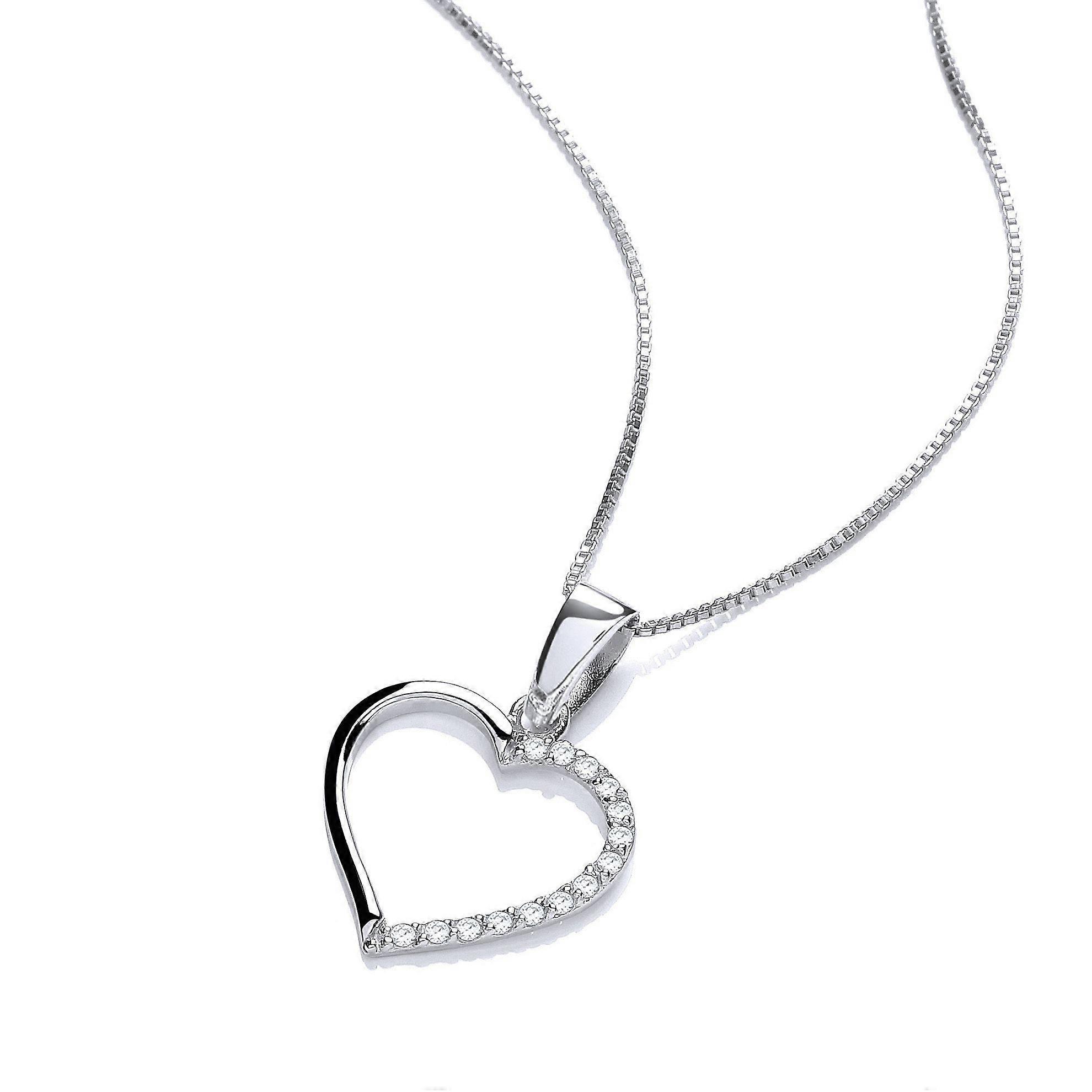 Jewelco London Ladies Rhodium Plated Sterling Silver CZ Semi Set Open Love Heart Pendant Necklace 16 + 2 inch