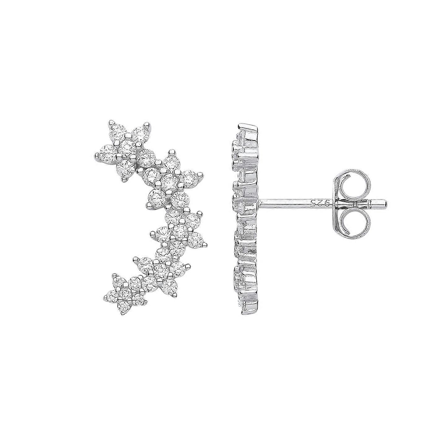 Jewelco London Ladies Rhodium Plated Sterling Silver CZ Shooting Star Flower Cluster Drop Earrings
