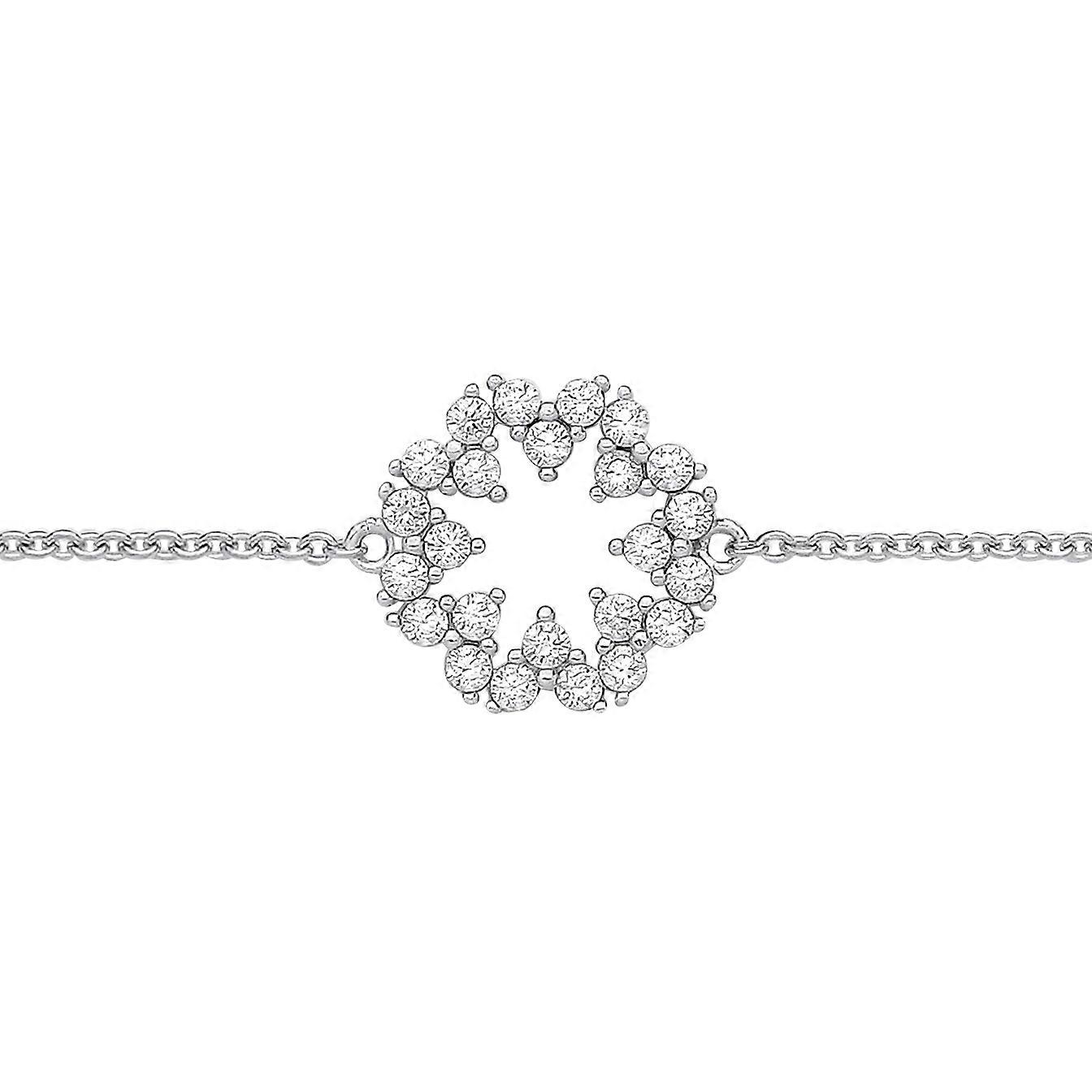 Jewelco London Ladies Rhodium Plated Sterling Silver CZ Supernova Cluster Rolo Charm Bracelet 7.25 + 1 inch