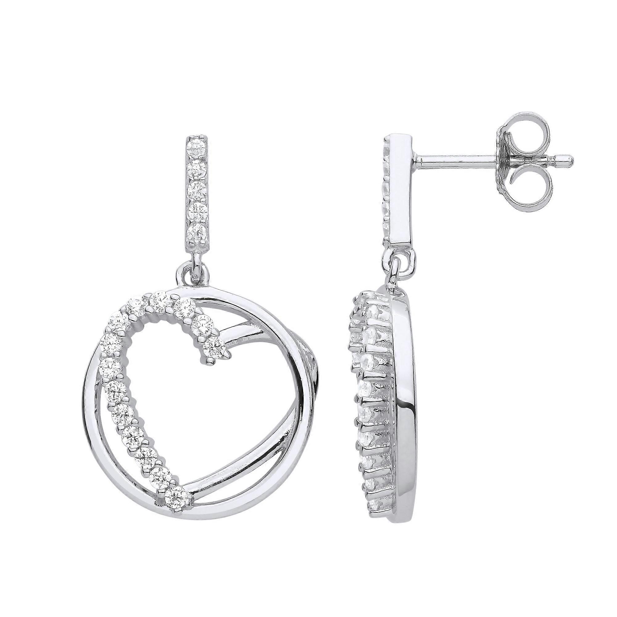 Jewelco London Ladies Rhodium Plated Sterling Silver CZ Trapped Love Heart Eternity Hoop Drop Earrings
